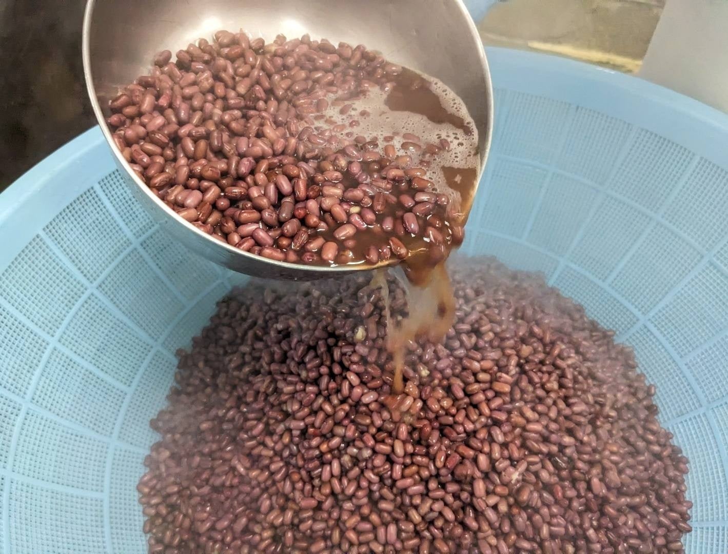 生産当日に北海道産の小豆を手で綺麗に水洗いします。