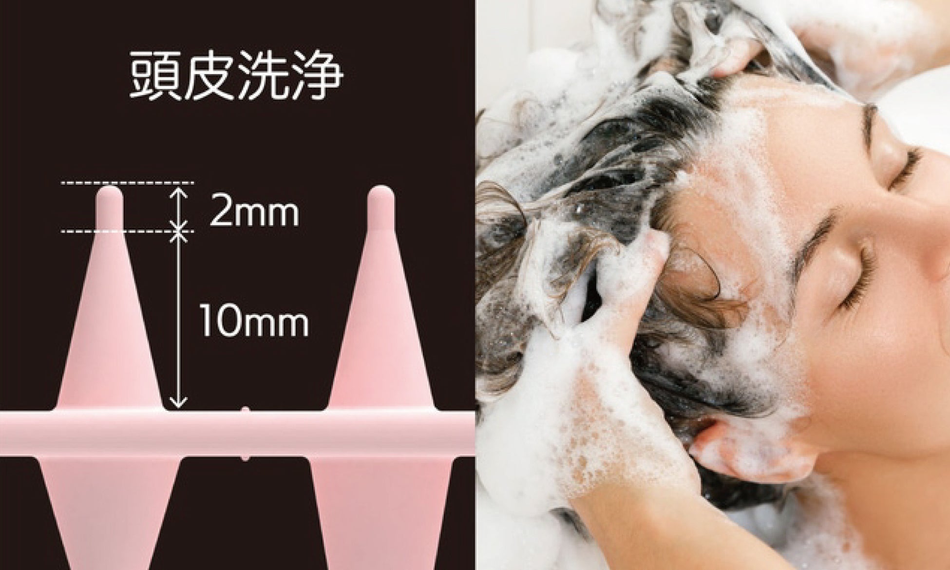 リバーシブル設計&シリコン素材で頭皮を心地よく洗う