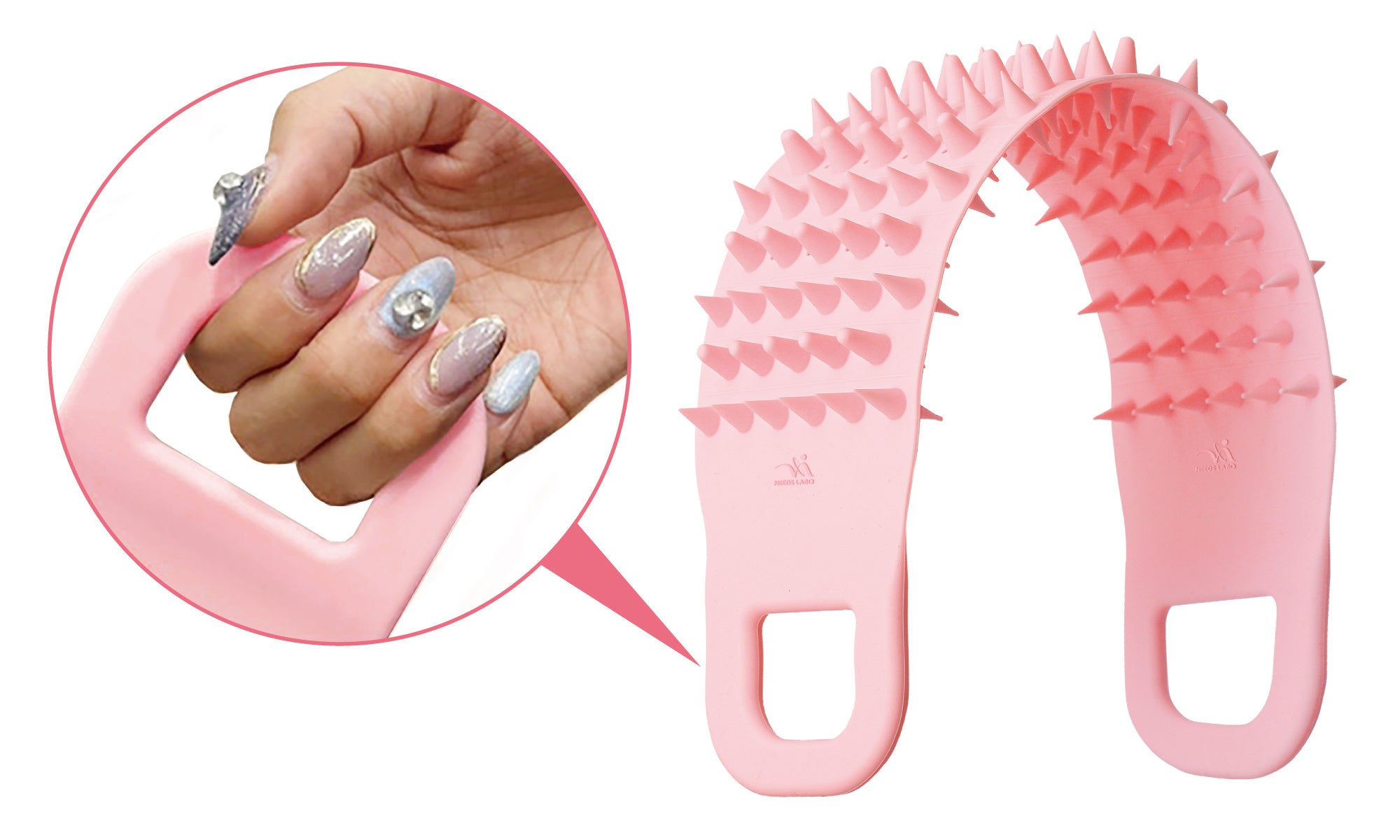 両サイドに持ち手があるので、爪が伸びていたり、ネイルをしていても、爪で頭皮を傷つける心配はありません。