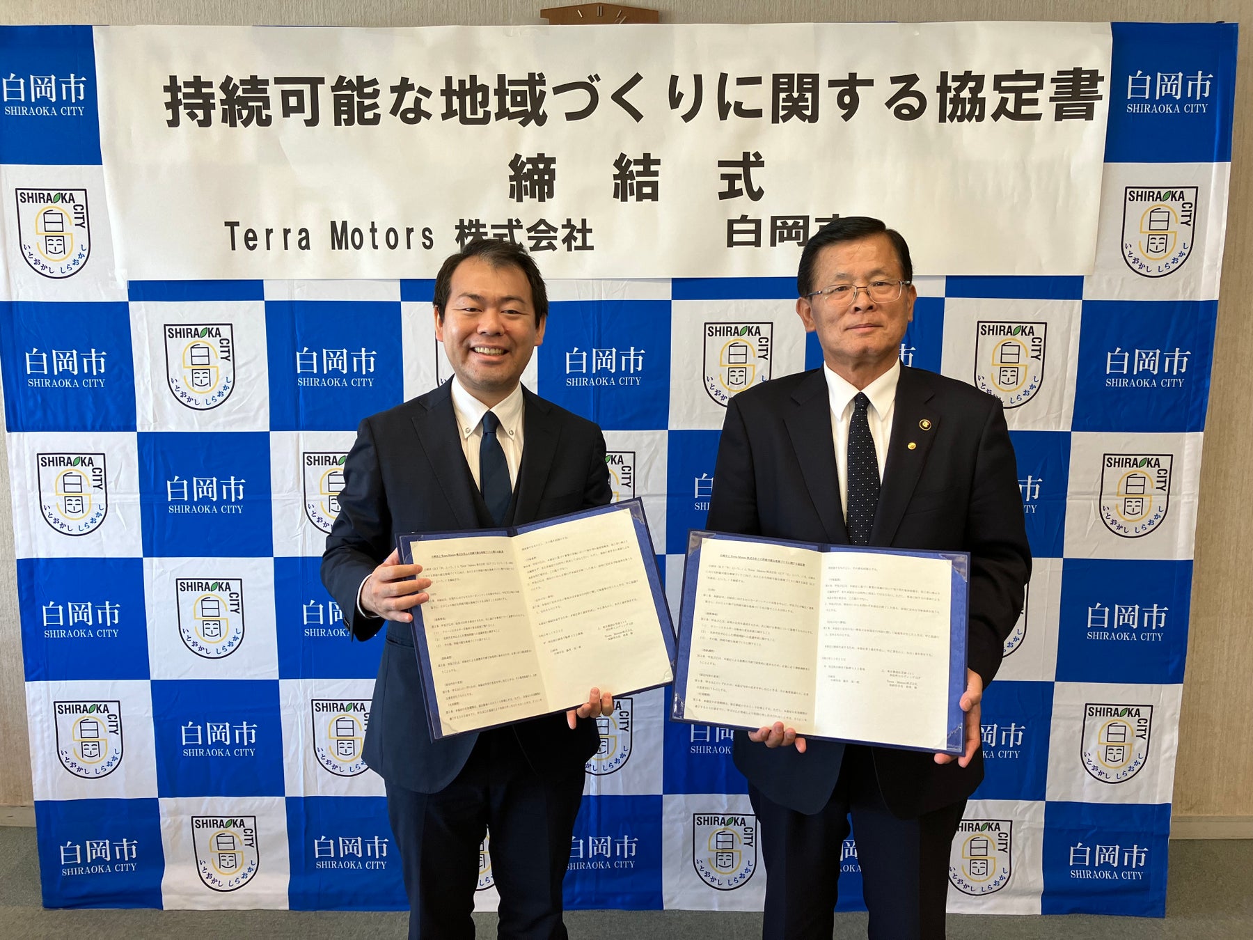 EV充電インフラ事業「Terra Charge(読み:テラチャージ)」を展開するTerra Motors株式会社(本社:東京都港区、取締役会長:徳重徹 / 代表取締役社長:上田晃裕、以下「テラモーターズ」)は、埼玉県の白岡市(読み:しらおかし)と、「白岡市とTerra Motors株式会社との持続可能な地域づくりに関する協定」(以下「本協定」)を締結したことをお知らせします。この度の協定締結により、テラモーターズとしては埼玉県内で4自治体と協定を締結したこととなります。白岡市への充電インフラ普及を推進し、カーボンニュートラルの実現を相互に目指してまいります。