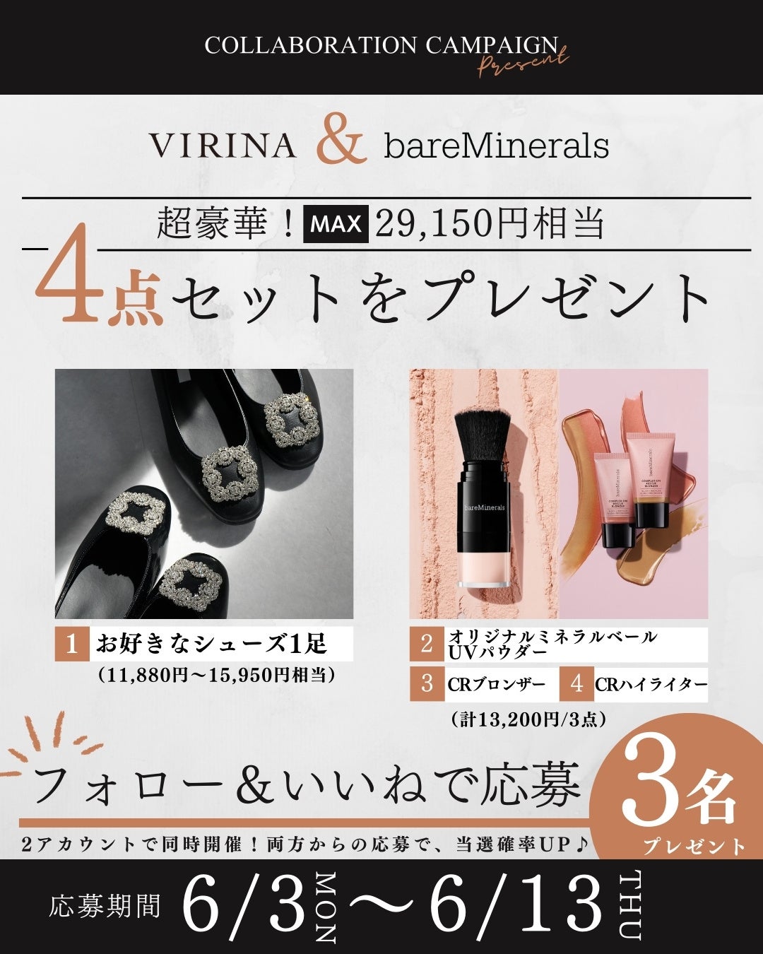 *両方のアカウント(@ virina_official、@ bareminerals_jp)からご応募可能