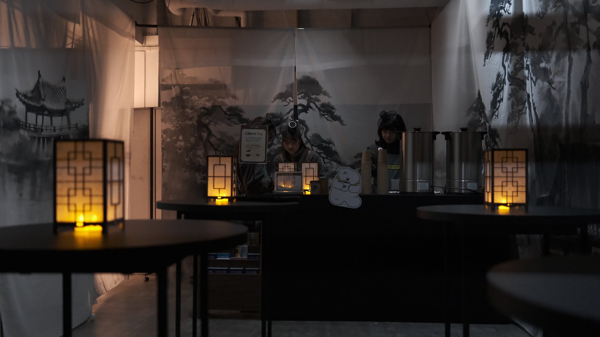 地下1階に広がる江陵市の美しい展示を見ながら温かいコーヒーorそば茶が飲めるブースを設置