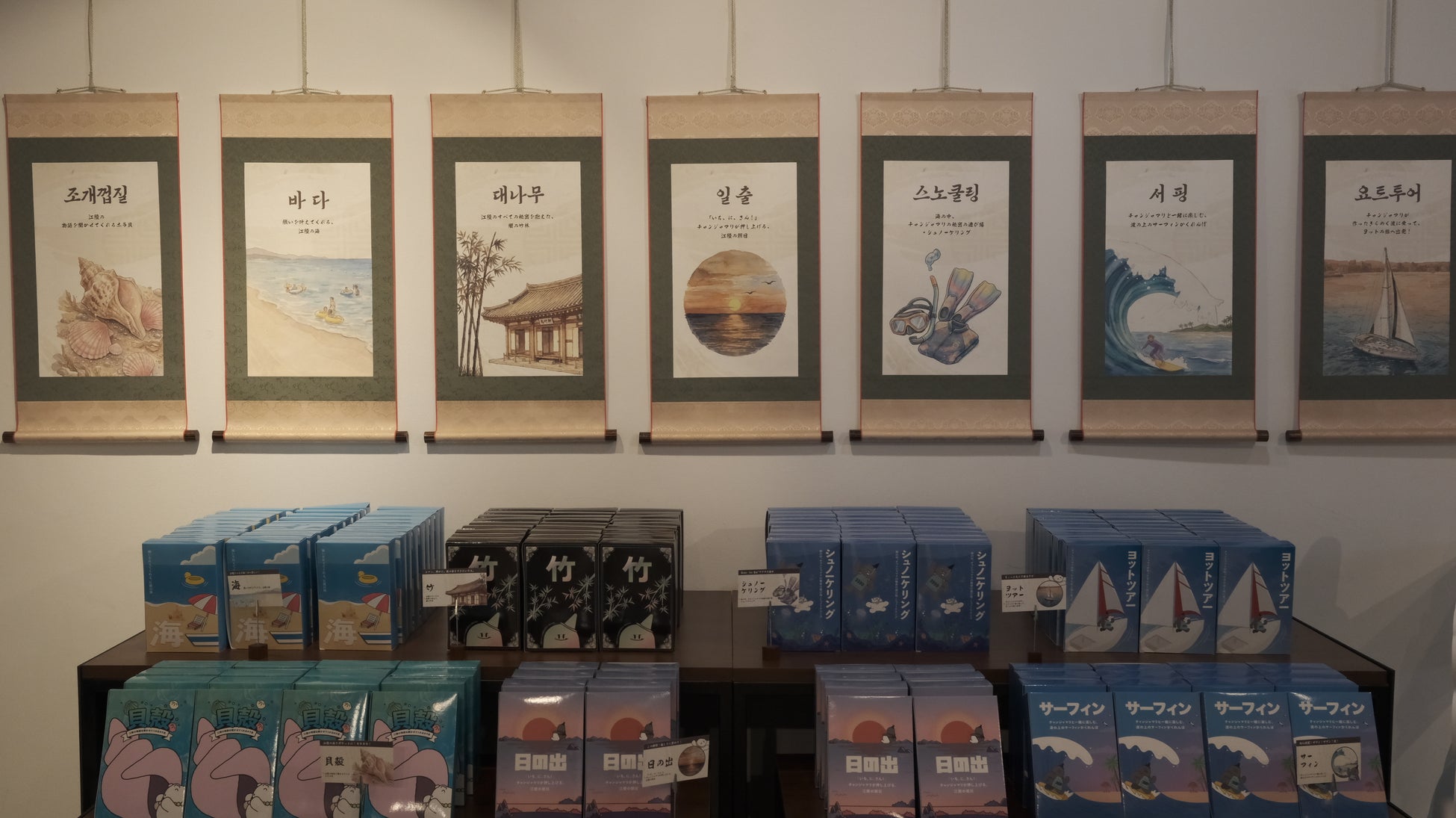 「マリの秘密商店」は、江陵市に昔から伝わる妖怪”チャンジャマリ”が開く秘密商店をモチーフに、江陵市の特産物の擬似購入体験や、展示ゾーン・フォトゾーンなど江陵市のカルチャーや魅力を存分に体験できる空間をたくさん用意いたしました。