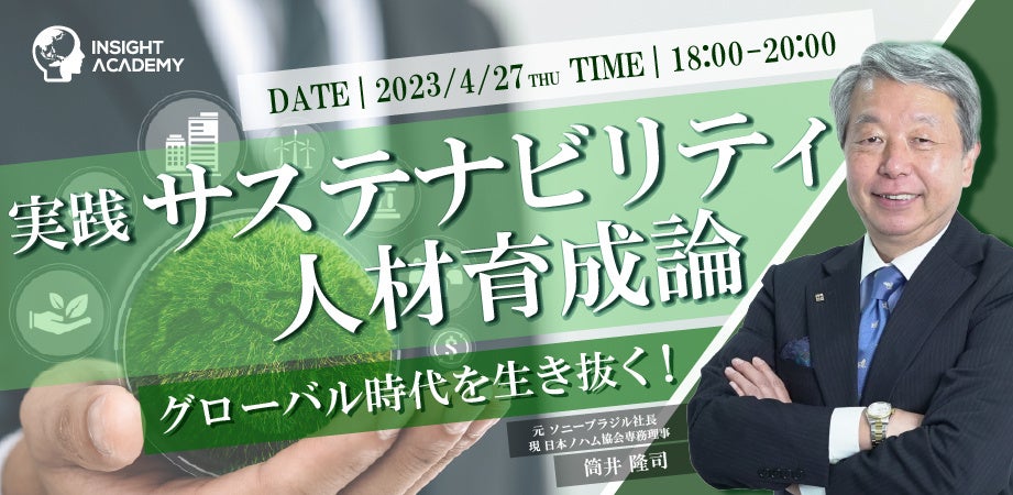 グローバル⼈材育成・研修業を⼿掛けるインサイトアカデミー株式会社(東京都港区、代表取締役:北村嘉章)は、2023年4月27日(木)18時より、無料webセミナー「【グローバル時代を生き抜く!】実践サステナビリティ人材育成論 」を開催します。
