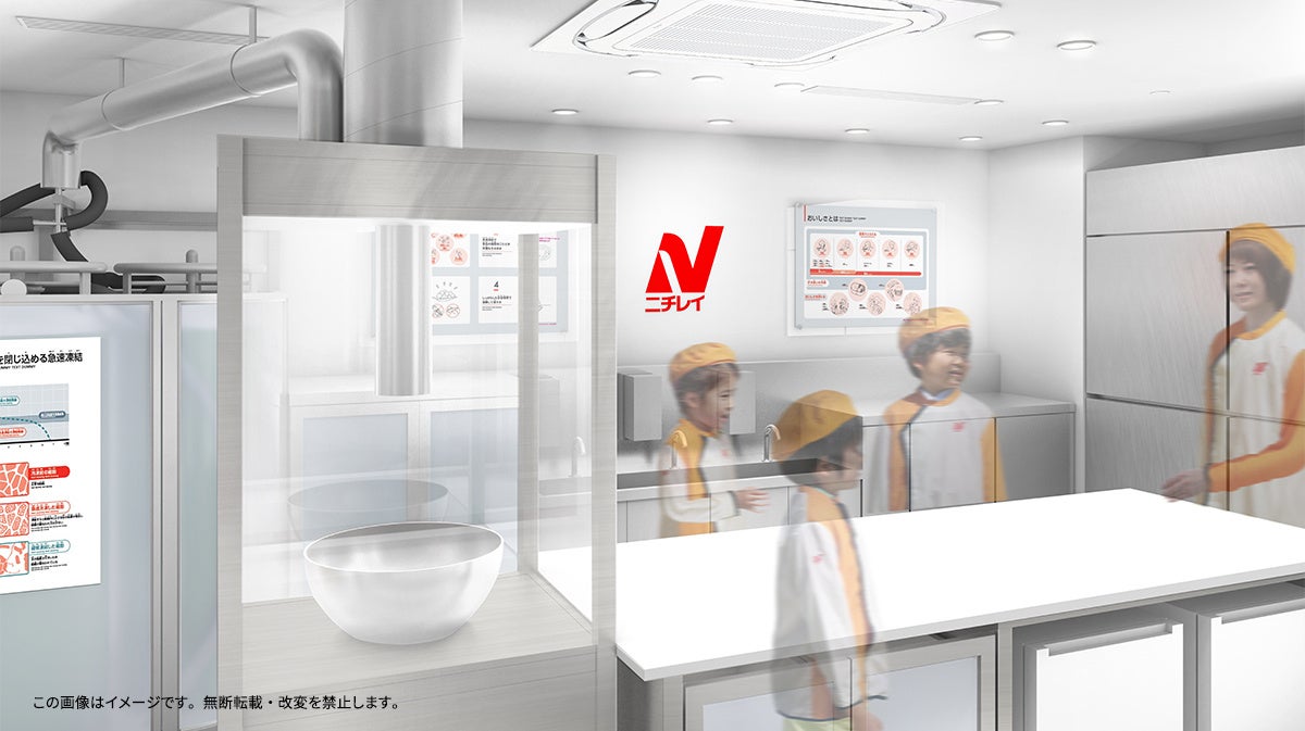 今回のリニューアルでは、従来から提供する「食品開発者」のアクティビティ体験に加え、パビリオンの外観や内装を全面的に刷新。入口には、食材が冷凍食品になるまでのプロセスを視覚的に学べる様子を表現するほか、パビリオン内には、こども達が冷凍食品の魅力やおいしさについて理解が深められる「ラーニングボード」や、衛生管理のための「エアカーテン」を導入し、楽しみながら食品の安全や保存の重要性を学べる工夫が施されています。
