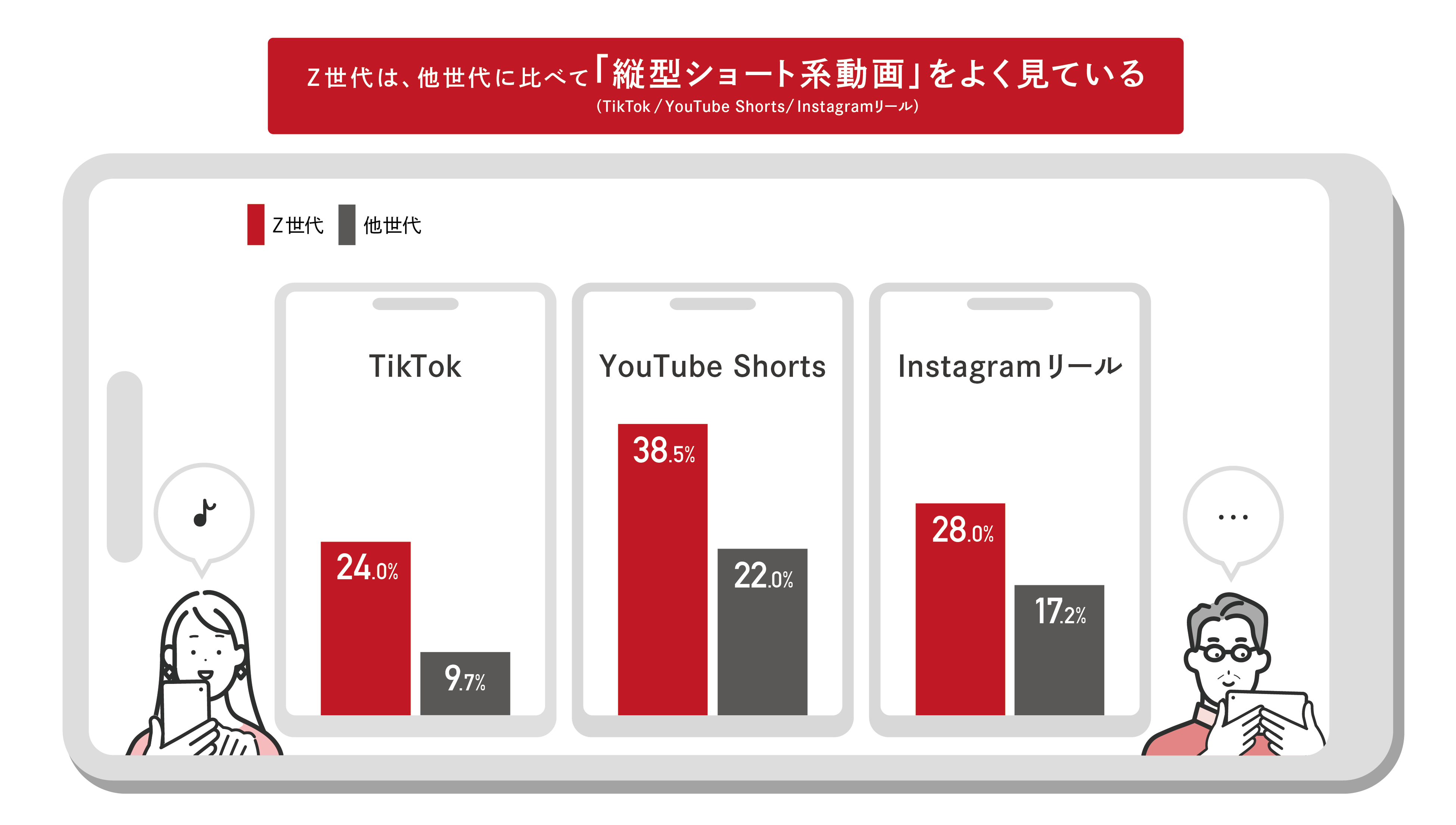 他世代と比較して縦型ショート系動画※1を視聴している割合が高く、