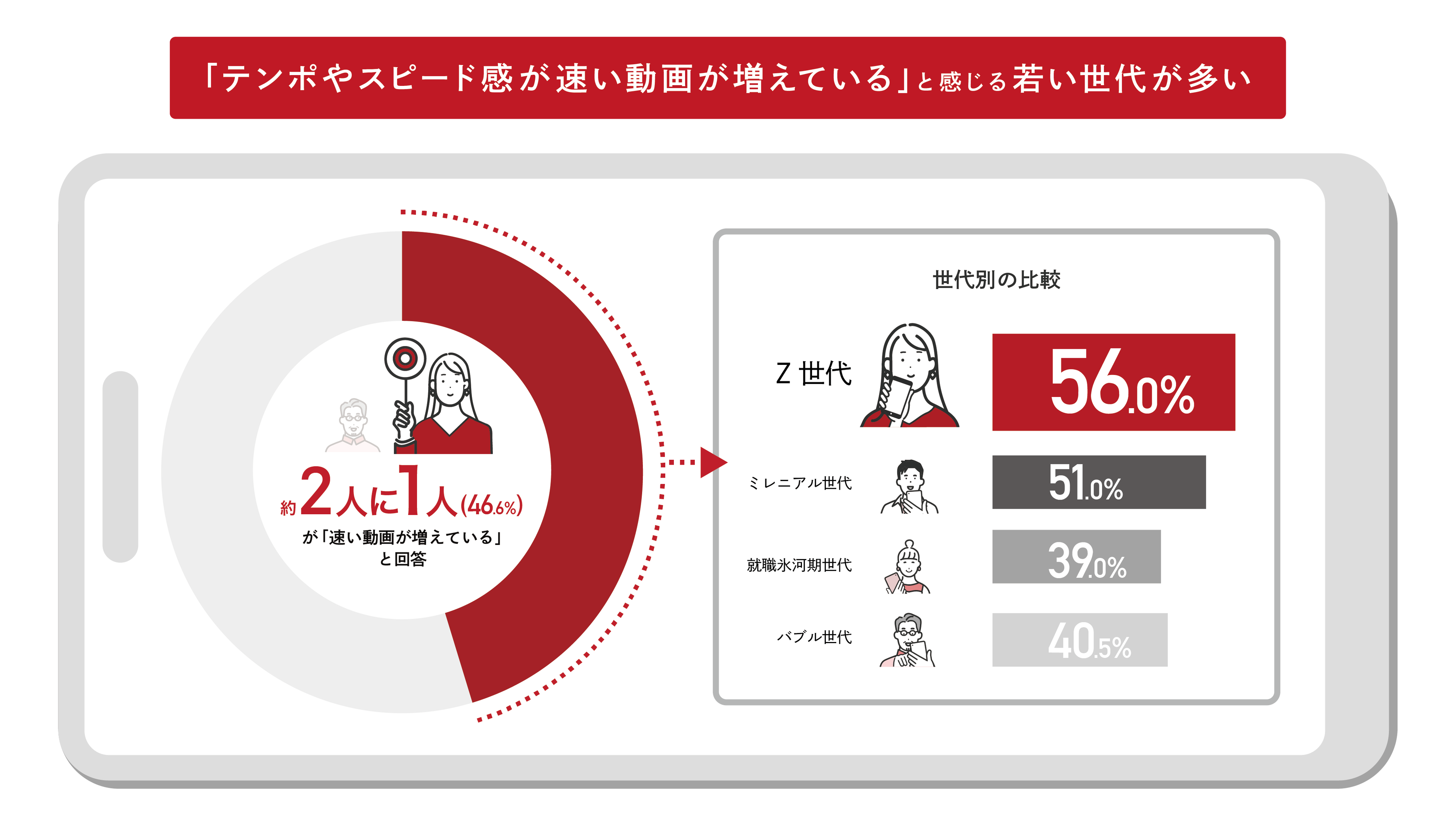 2人に1人以上がテンポ/スピード感が速い動画が増えていると感じている結果に。