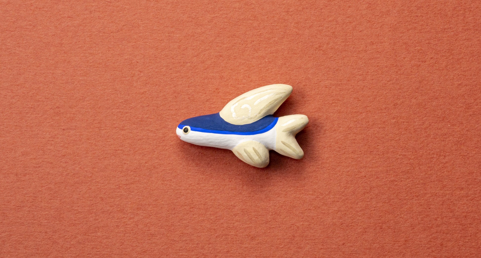 福岡生まれの縁起もの、茅乃舎限定の津屋崎めんこ「浮雲」。雨を運んでくる雲は古来より吉祥のシンボルで、その雲が茅乃舎だしの原料・あご(飛び魚)とともに空を渡り、全国に幸せを運びます。