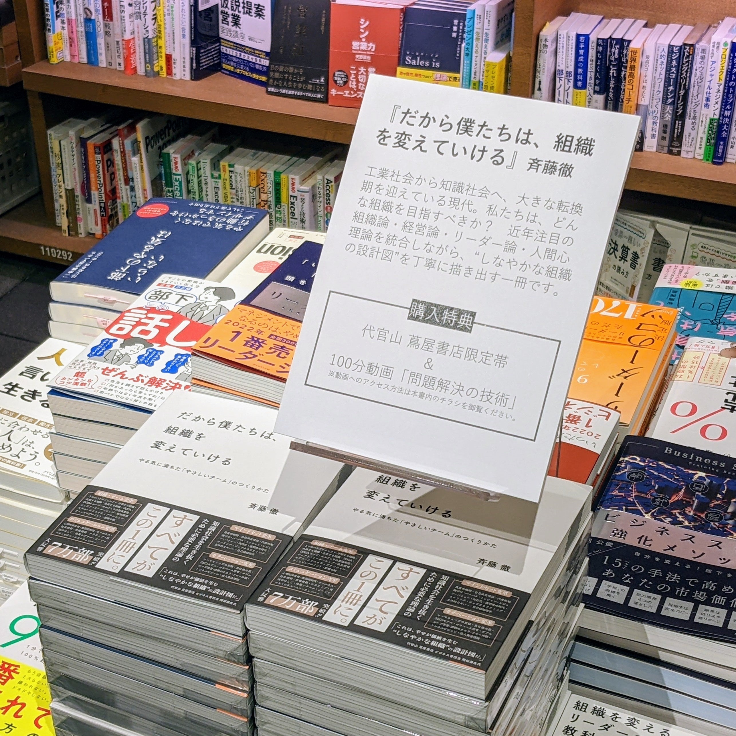 9月26日からは、同書店にて『だから僕たちは、組織を変えていける』のキーコンセプトを、選書とパネルによって立体的に表現するフェアを開催する予定です(10月12日まで)。