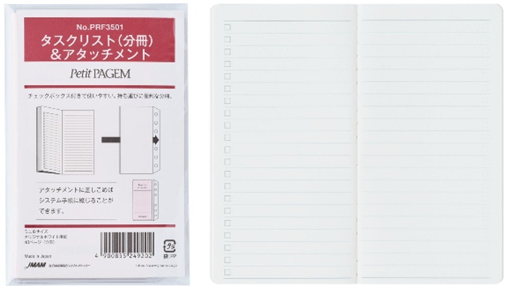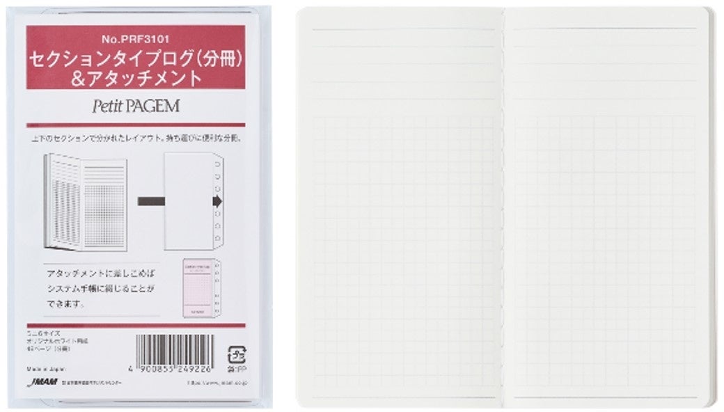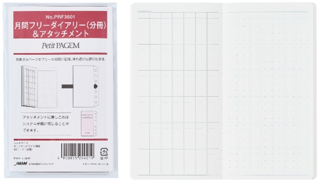 システム手帳に挟まずに単独でも使用できる分冊タイプ。アタッチメントを使うとシステム手帳にセット出来ます。