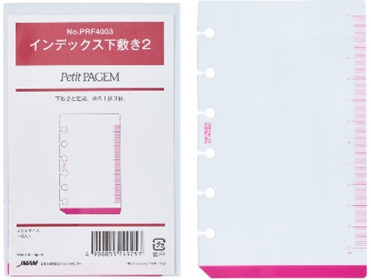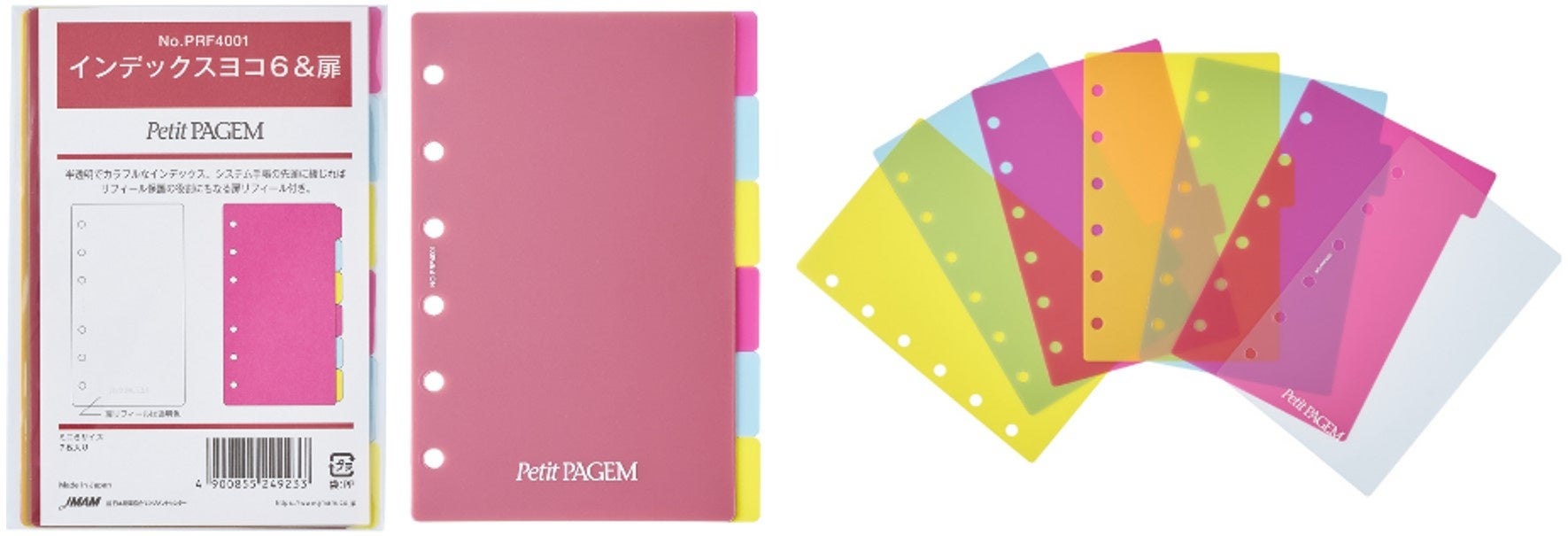 半透明でカラフルなインデックスリフィール。リフィール保護の役割にもなる扉リフィール付き。