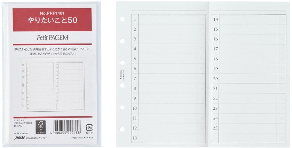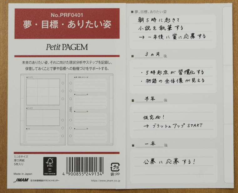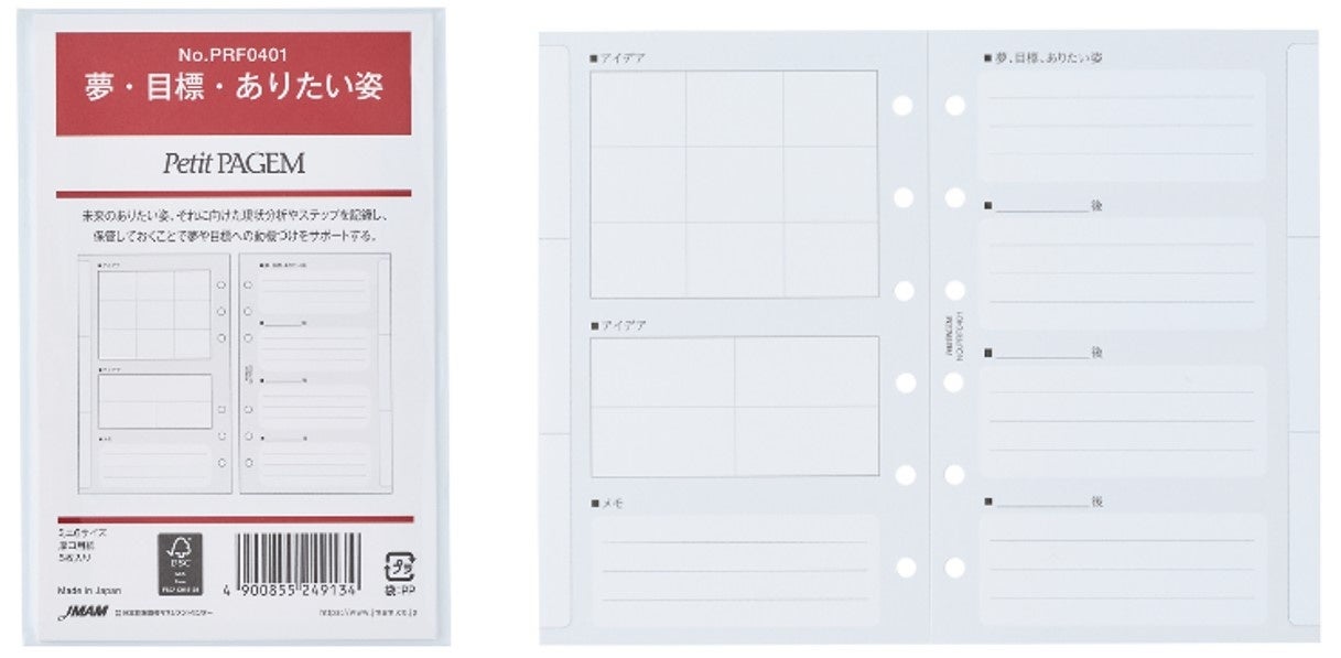 やりたいことや目標を書き出すことができる2つ折りリフィール。