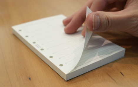 単独での持ち運びに便利で、使用したリフィールをはがして保管する運用に向いたメモパッド仕様。