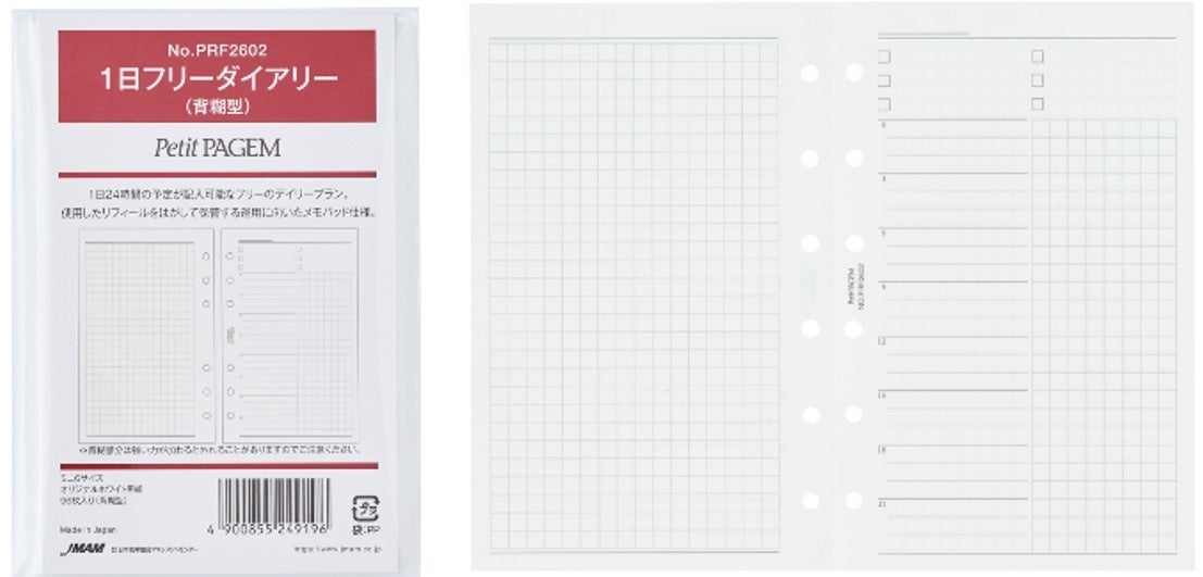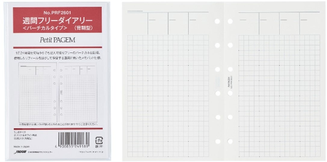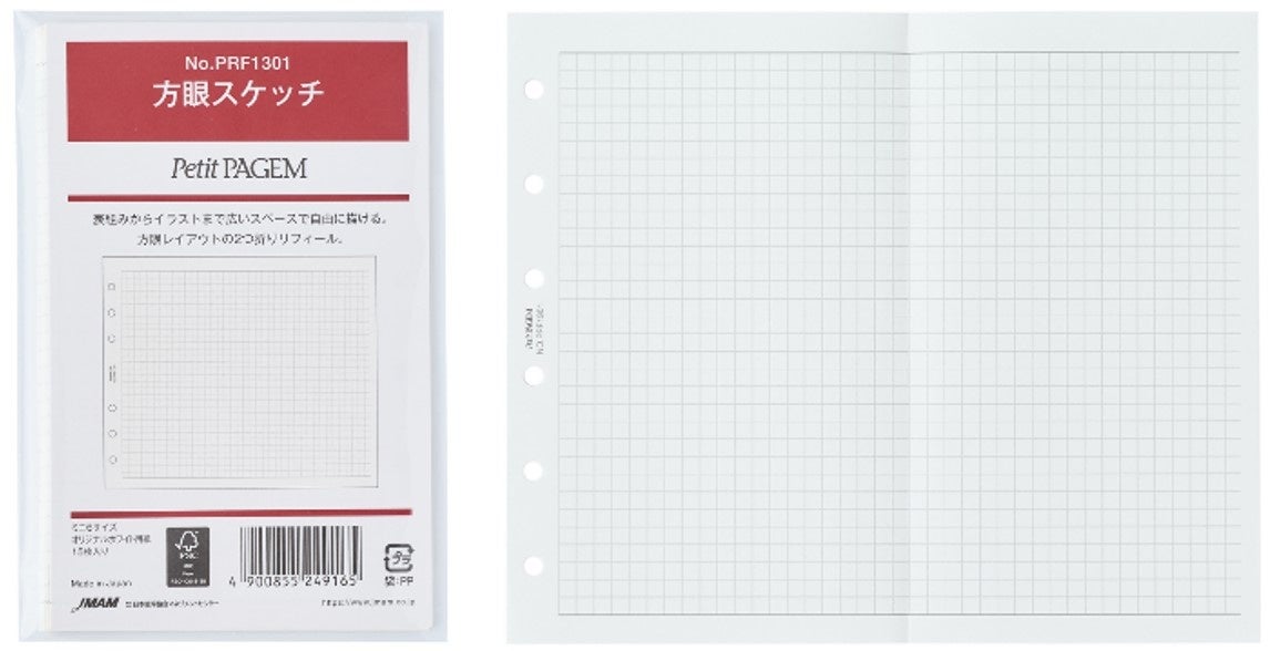 表組みからイラストまで広いスペースで自由に描ける。方眼レイアウトの2つ折りリフィール。