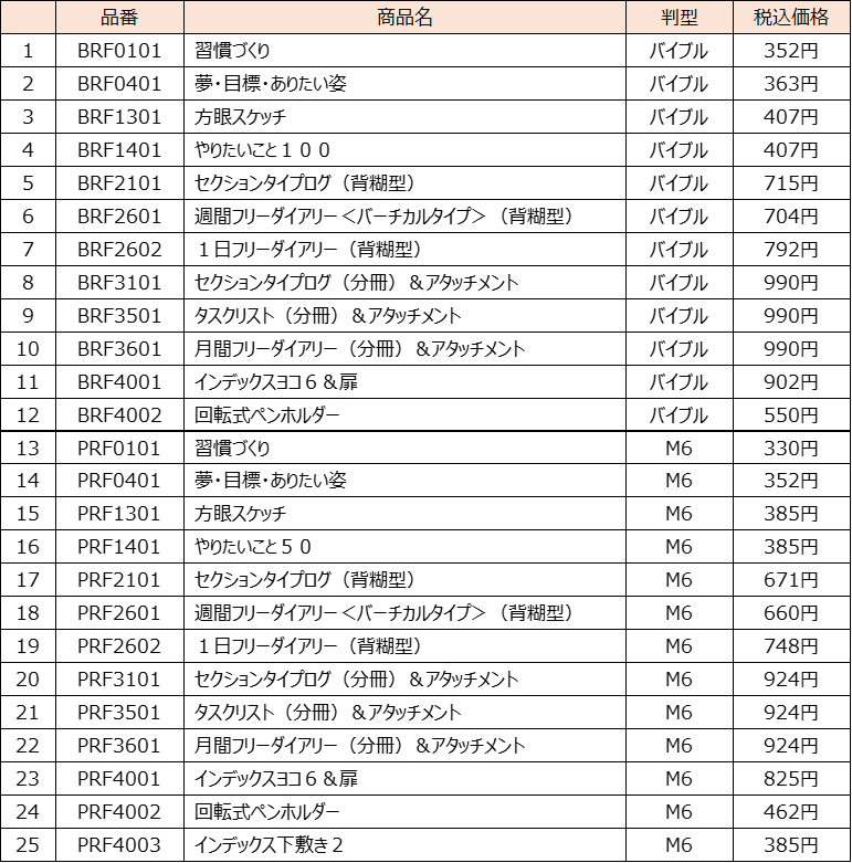 これまでBindexでは主にビジネスユースのユーザーをターゲットに商品展開をしてきましたが、システム手帳をプライベートで愛用するユーザーに向けて、スケジュールやタスクの管理から、叶えたい事や想い、日々の記録まで、様々な用途で使えるレイアウトのリフィール群を新たに開発しました。サイズはバイブルサイズとM6(ミニ6)サイズの2サイズ展開です。