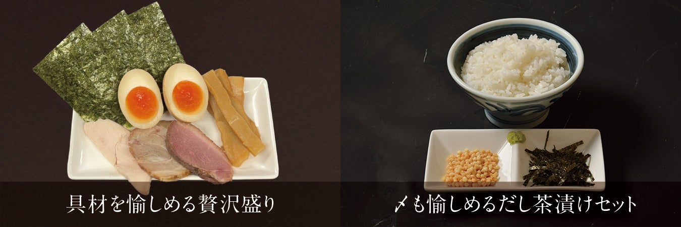 新しい食べ方として、〆のだし茶漬けセットもご用意しています。玉あられ、きざみ海苔、あまったスープをアツアツのご飯にかけてお召し上がりいただくことで、一滴も余すことなくらーめんをお愉しみいただけます。