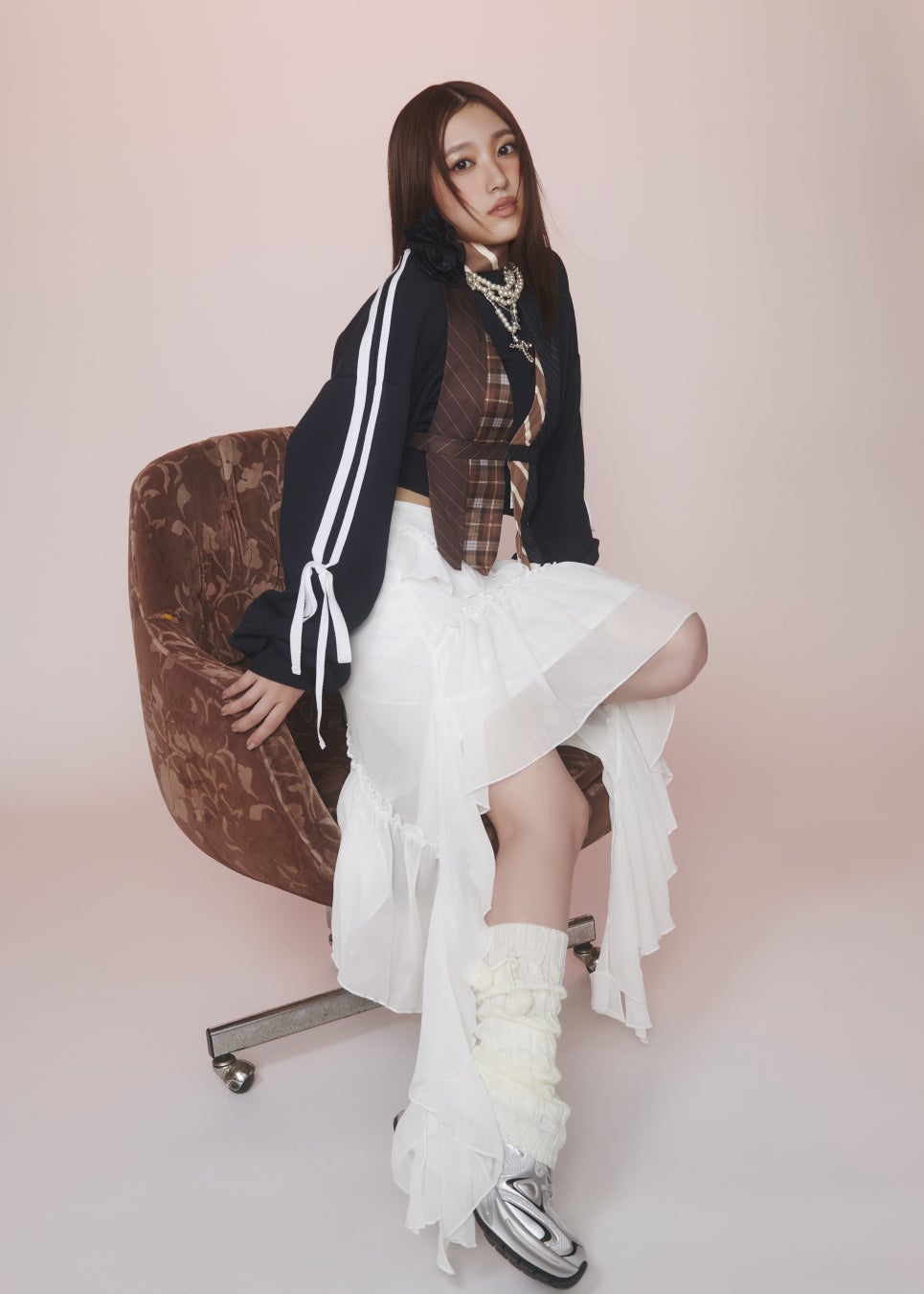 全LOOKは、SHEIN×矢吹奈子さんのコラボコレクション「Sweet Autumn」のなかから、 「一人ファッション・アートギャラリー」をテーマとしたスタイリングで、NYLONらしくアーティなビジュアルで、無限大のファッションの可能性と楽しさをお届けします。また、撮影秘話やコラボコレクション制作におけるメイキングストーリーなどの独占インタビューページも贅沢にご用意しています。