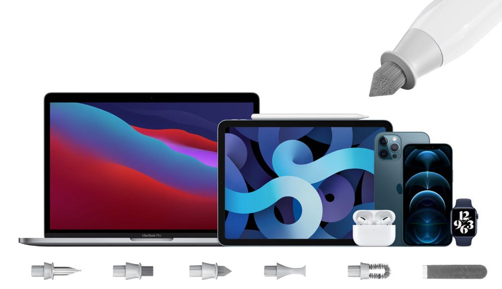 AirPodsやiPad、iPhone、MacBookなどのデバイスで使用できます。交換可能なツール設計は、汚れ、ほこり、耳垢、皮脂などを徹底的に除去し、品質維持・使用年数を延ばすのに役立ちます。