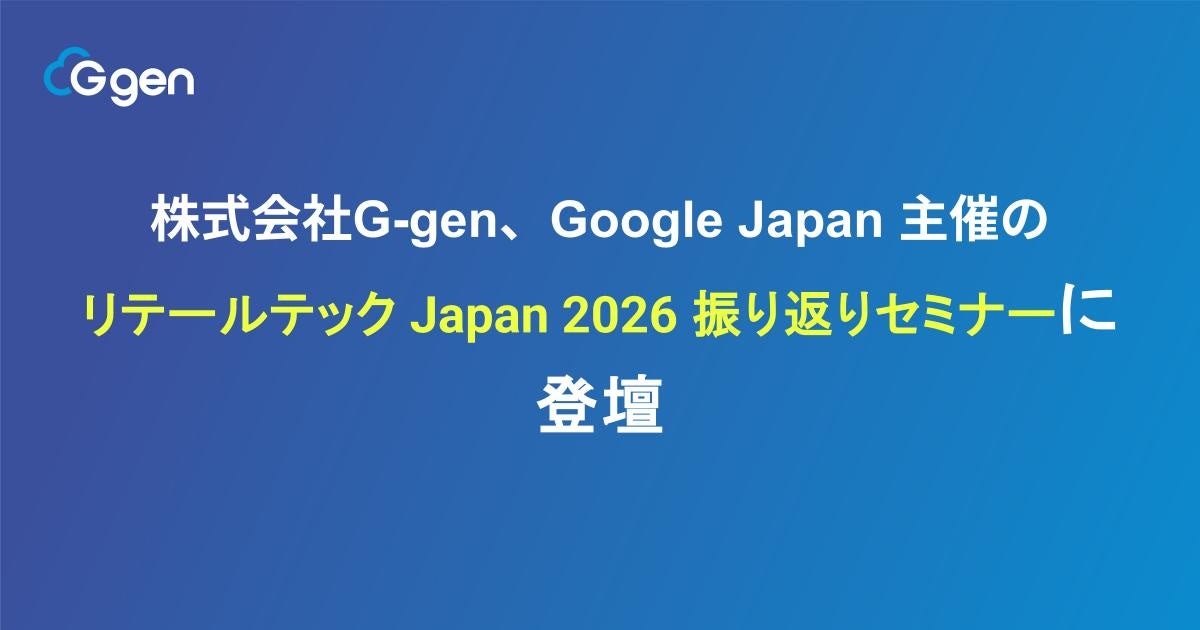 株式会社G-gen(本社:東京都新宿区、代表取締役:羽柴 孝、以下 G-gen)は、4月22日(水)Google Cloud が主催する「リテールテック Japan 2026 振り返りセミナー」に登壇いたします。