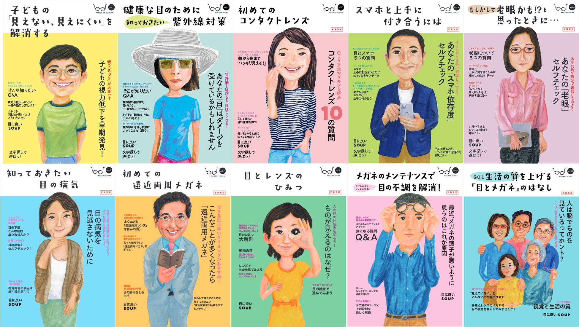 眼鏡市場は、一人ひとりに最適なメガネを提案するアイケアの一環として、目に関する正しい情報をお客様へお届けする事を目的とし、眼科医(アイリスター麻布クリニック院長 西之原美樹先生)監修のもと、分かりやすい表現で、子どもから大人まで親しめる本を数多く出版する小学館が運営する「小学館ライフスタイル・ブランドスタジオ」と共同でアイケア BOOK を製作しています。