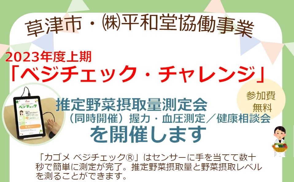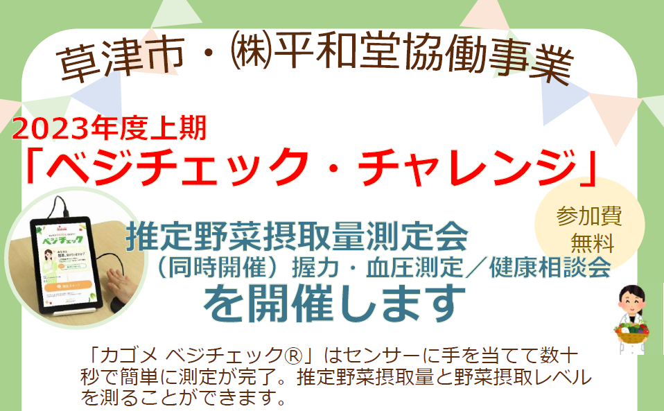 【平和堂・草津市 協働企画】「健幸」と「HOPポイント」を!「ベジチェック・チャレンジ」開催します!
