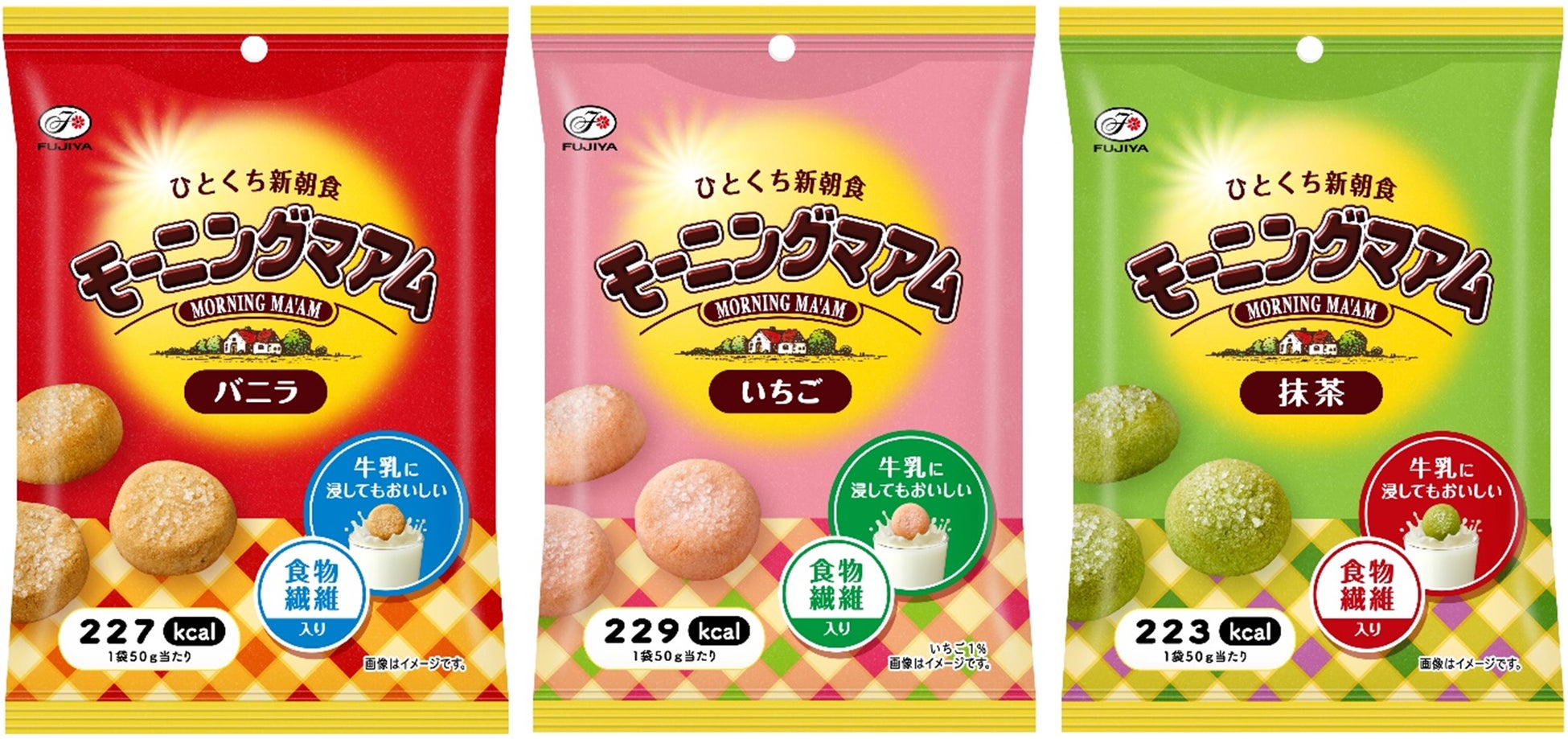 不二家のロングセラー「カントリーマアム」の技術を活用した、朝食としても手軽に楽しめて、小腹が満たせる食物繊維入りソフトクッキー「モーニングマアム」が登場します。「カントリーマアム」の特長のひとつである、外は“サックリ”中は“しっとり”な食感を活かし、生地に食物繊維を配合、天面に砂糖をかけて焼き上げました。そのまま食べても牛乳やヨーグルト、はちみつと一緒に食べても美味しく、自分好みにアレンジしてお楽しみいただけます。朝食に「モーニングマアム」を食べて、一日を元気にスタートさせませんか。