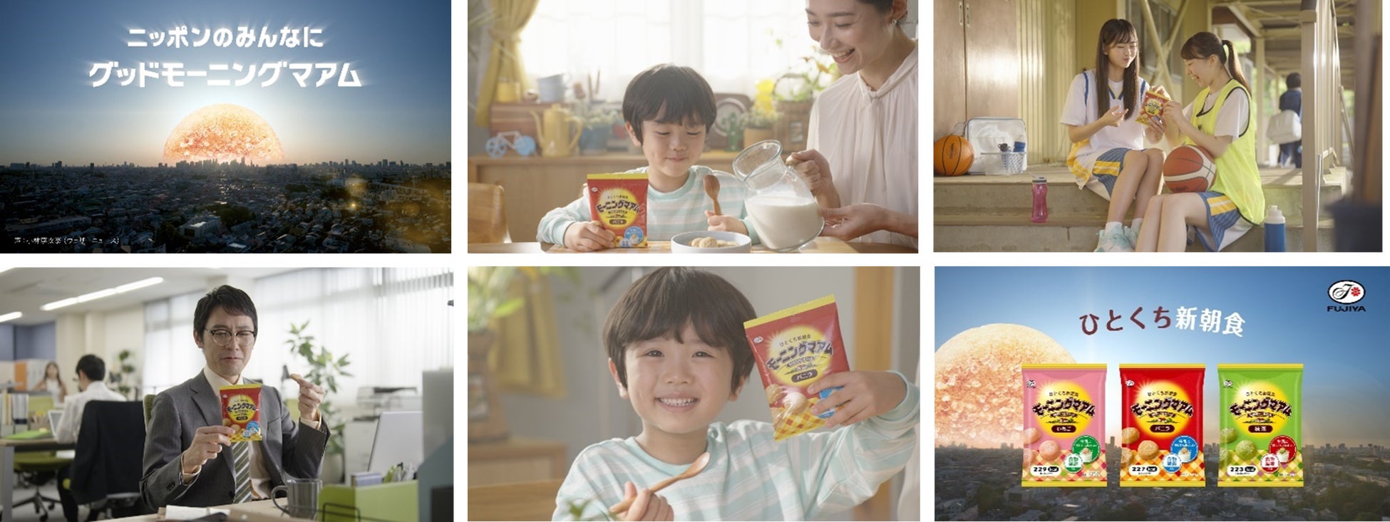 7月2日(火)より、「ニッポンのみんなにグッドモーニングマアム」をコンセプトにした新TV-CM『モーニングマアム』を全国でオンエアいたします。CMは、「日本の新しい朝の顔」として、「モーニングマアム」が朝日のように日本の街を照らすシーンから始まります。忙しい朝、家族がバトンリレーのように「モーニングマアム」をパスし合い、家族一人ひとりの「モーニングマアム」の食シーンを描くことで、いつでもどこでもひとくちで食べられる新朝食としての食べ方を訴求します。カメラが動き回りながらも常に商品を真ん中に捉えるカメラワークは必見です。