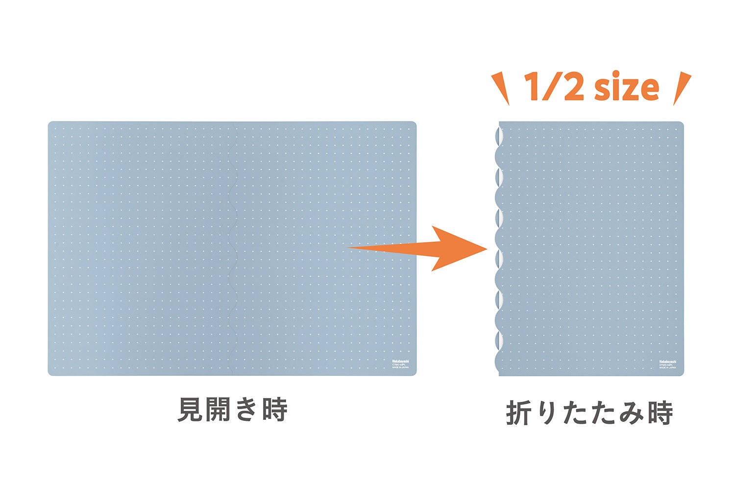 A3サイズ(折りたたみ時A4サイズ)、A4サイズ(折りたたみ時A5サイズ)と、ペンケースに入れて持ち運びができるモバイルサイズの3サイズをラインアップ。場所やシーンを選ばない落ち着いたカラーの4色展開です。