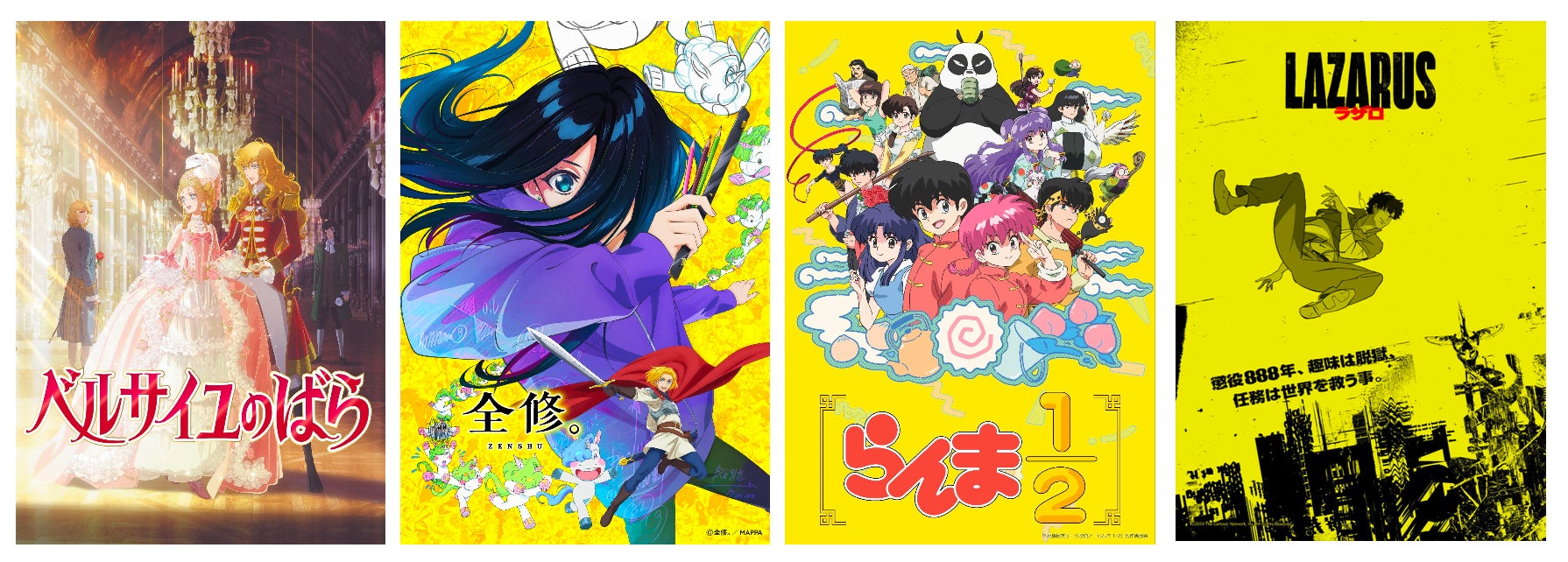 劇場アニメ『ベルサイユのばら』『全修。』 『らんま1/2』 『LAZARUS ラザロ』 などのパネルを会場に展示します。