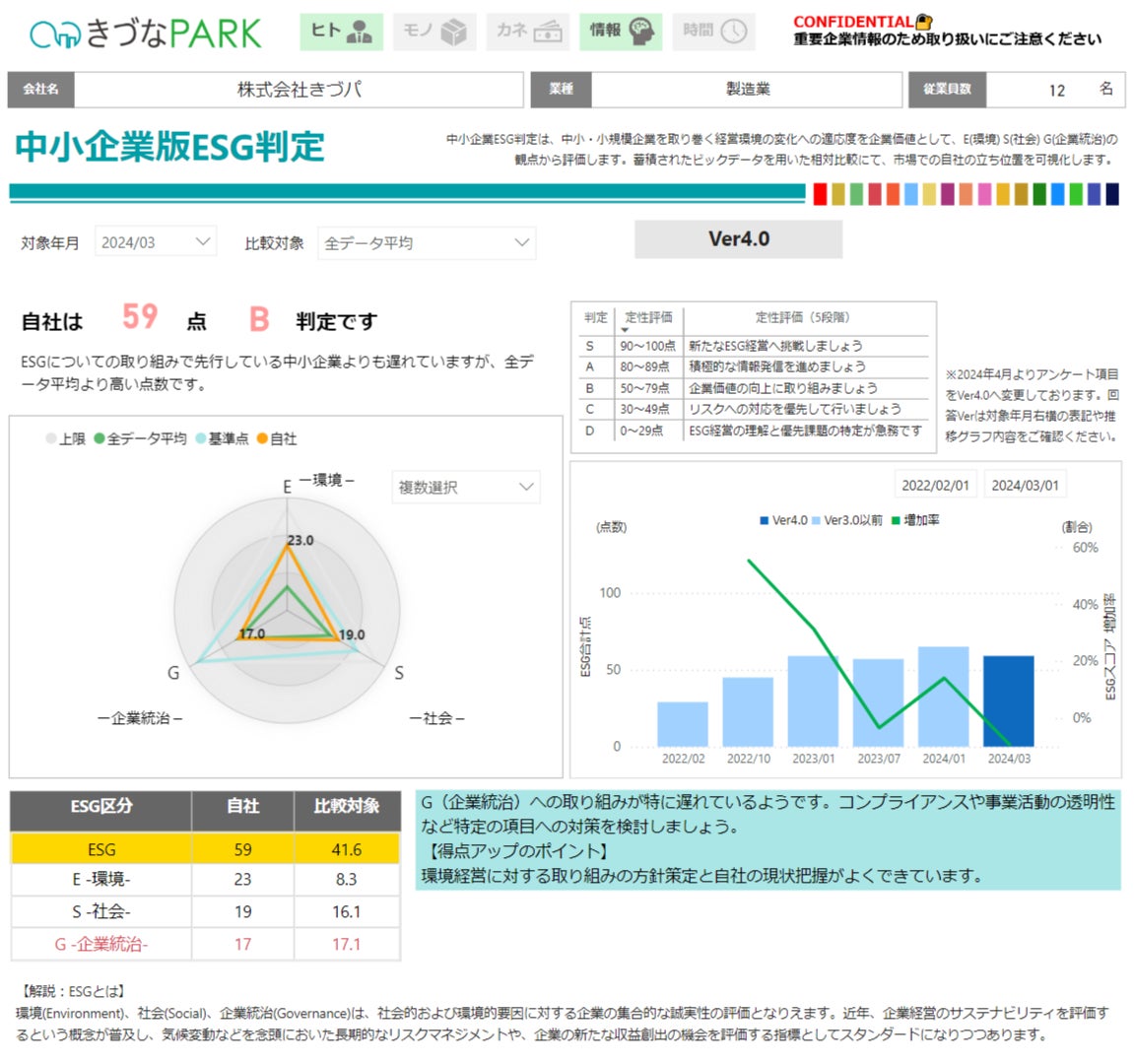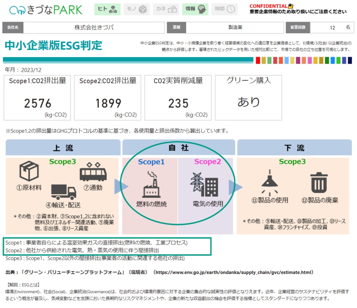 【きづなPARK上で実施されるESGスコアリング結果のイメージ】