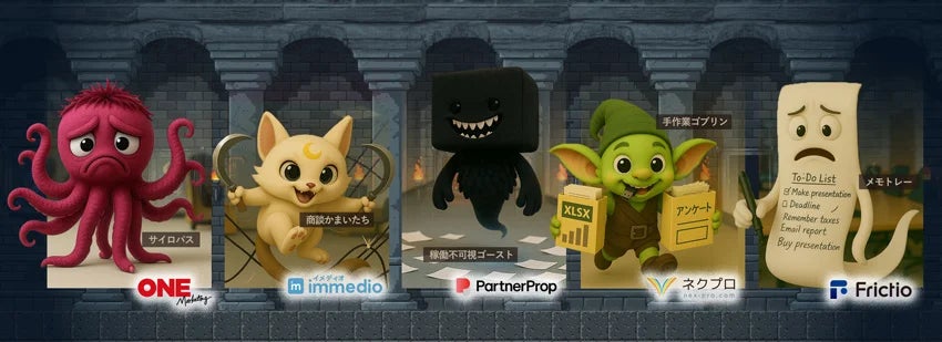 そこで、商談化を自動化するimmedio、マーケティング戦略の再構築を支援するワンマーケティング、パートナービジネスを戦略とツールで支援するパートナープロップ、ウェビナー運営を効率化するネクプロ、AIによる商談支援を提供するSYSLEAの5社が連携し、BtoB企業の包括的な課題解決をサポートいたします。