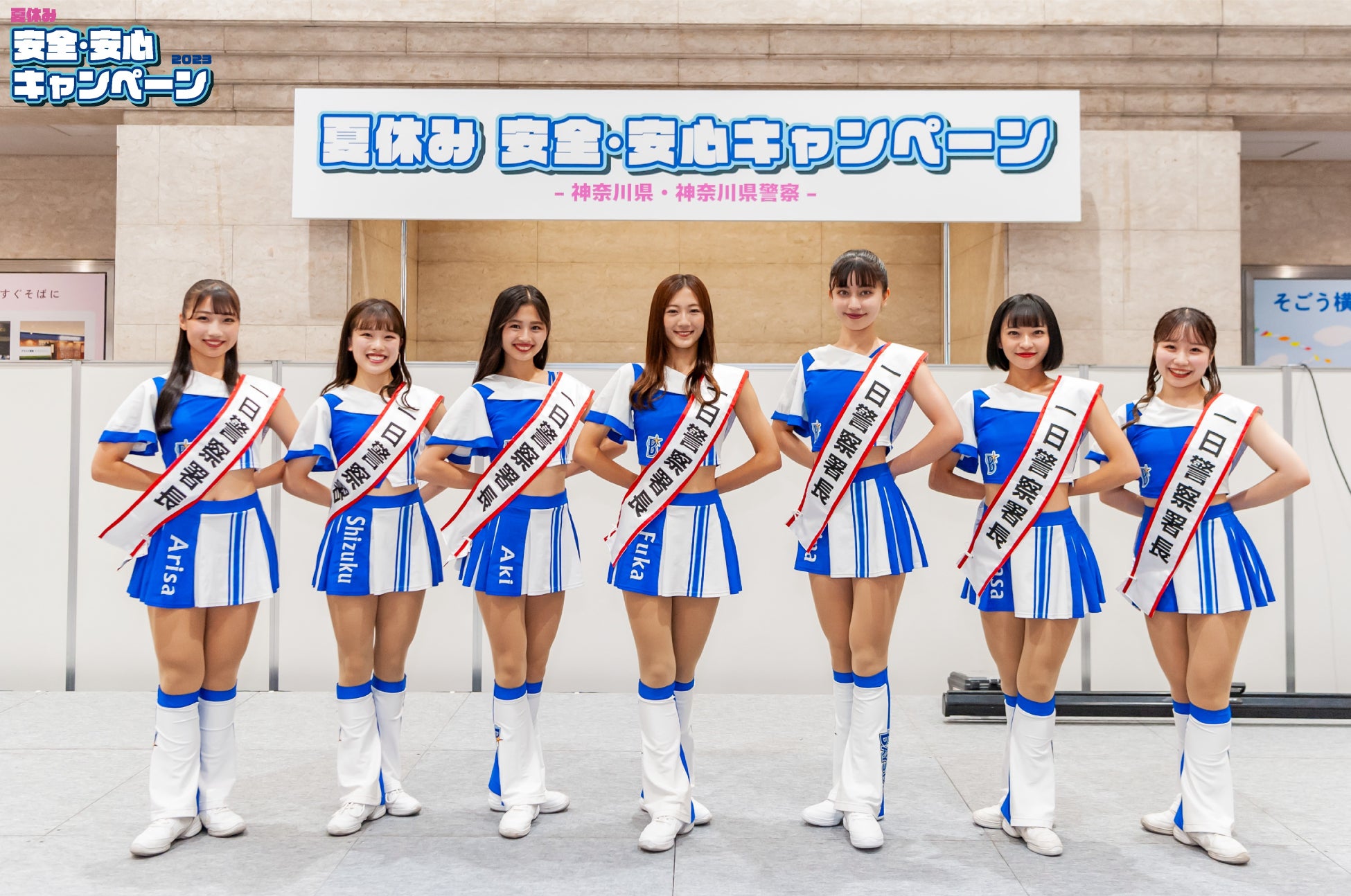 令和5年8月2日(水)横浜市西区の新都市プラザにて開催された夏休み安全・安心キャンペーンで、戸部警察署の一日警察署長として横浜DeNAベイスターズオフィシャルパフォーマンスチーム dianaの 7名に委嘱しました!