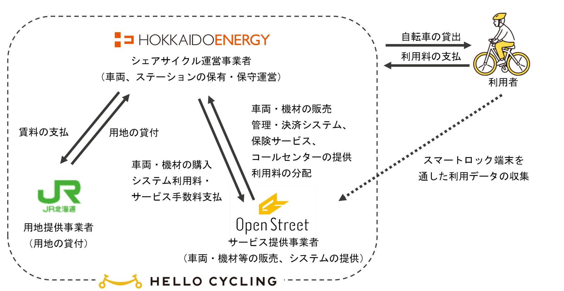※北海道エネルギーは、OpenStreet株式会社(本社:東京都港区、代表取締役社長CEO:工藤 智彰、以下「OpenStreet」)が提供するシェアサイクルプラットフォーム「HELLO CYCLING」を活用したシェアサイクルサービスを、2024年度から北海道内で展開しています。