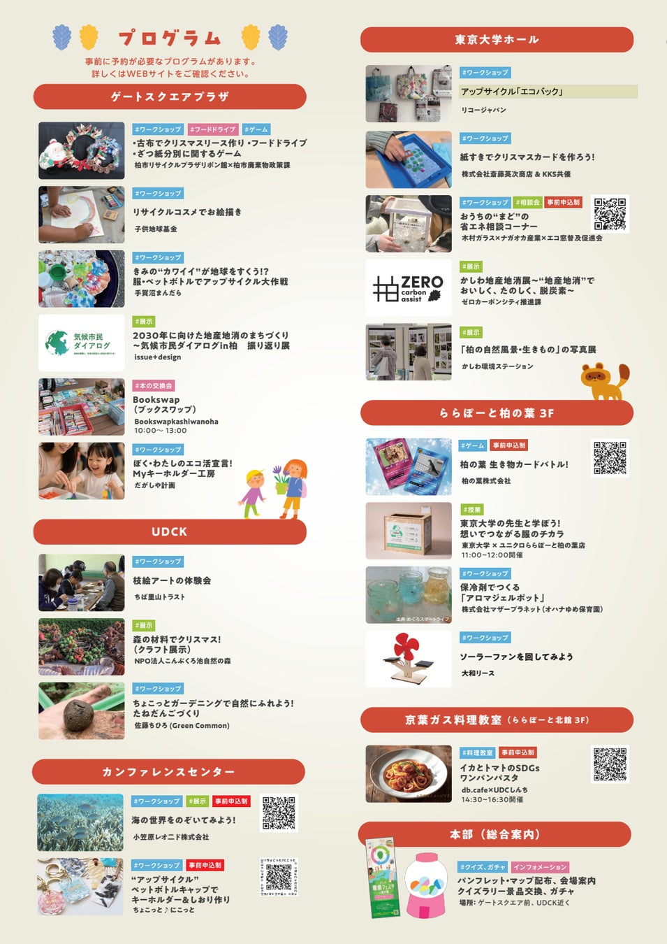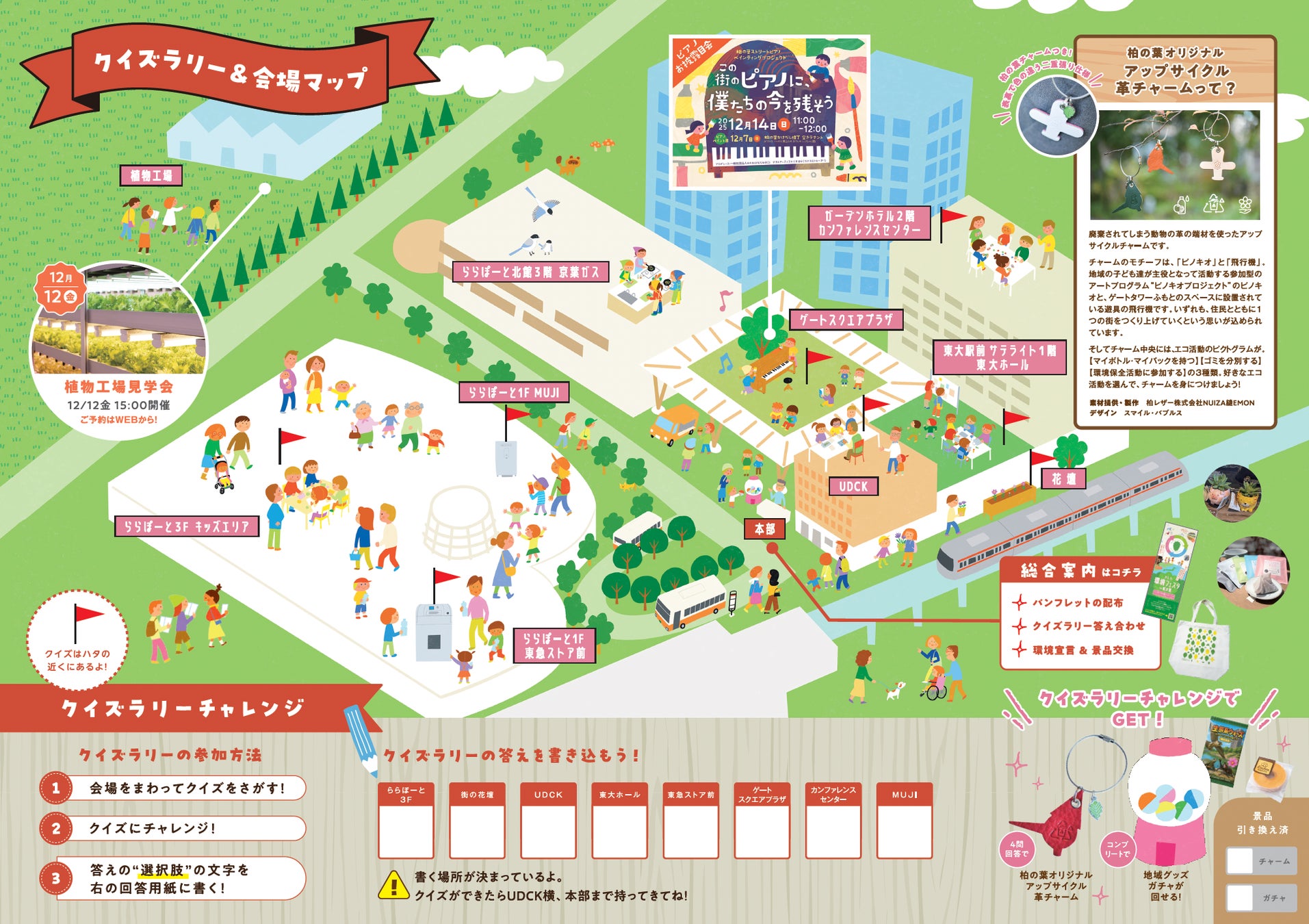 UDCK(柏の葉アーバンデザインセンター:Urban Design Center Kashiwa-no-ha)及び柏市環境部は、「みんなが変われば、地球も変わる!」をテーマとする環境タウンイベント『かしわ環境フェスタin柏の葉』を、12月14日(日) 10時から16時まで、柏の葉キャンパス駅周辺エリアで開催します。(一部、事前申込制)