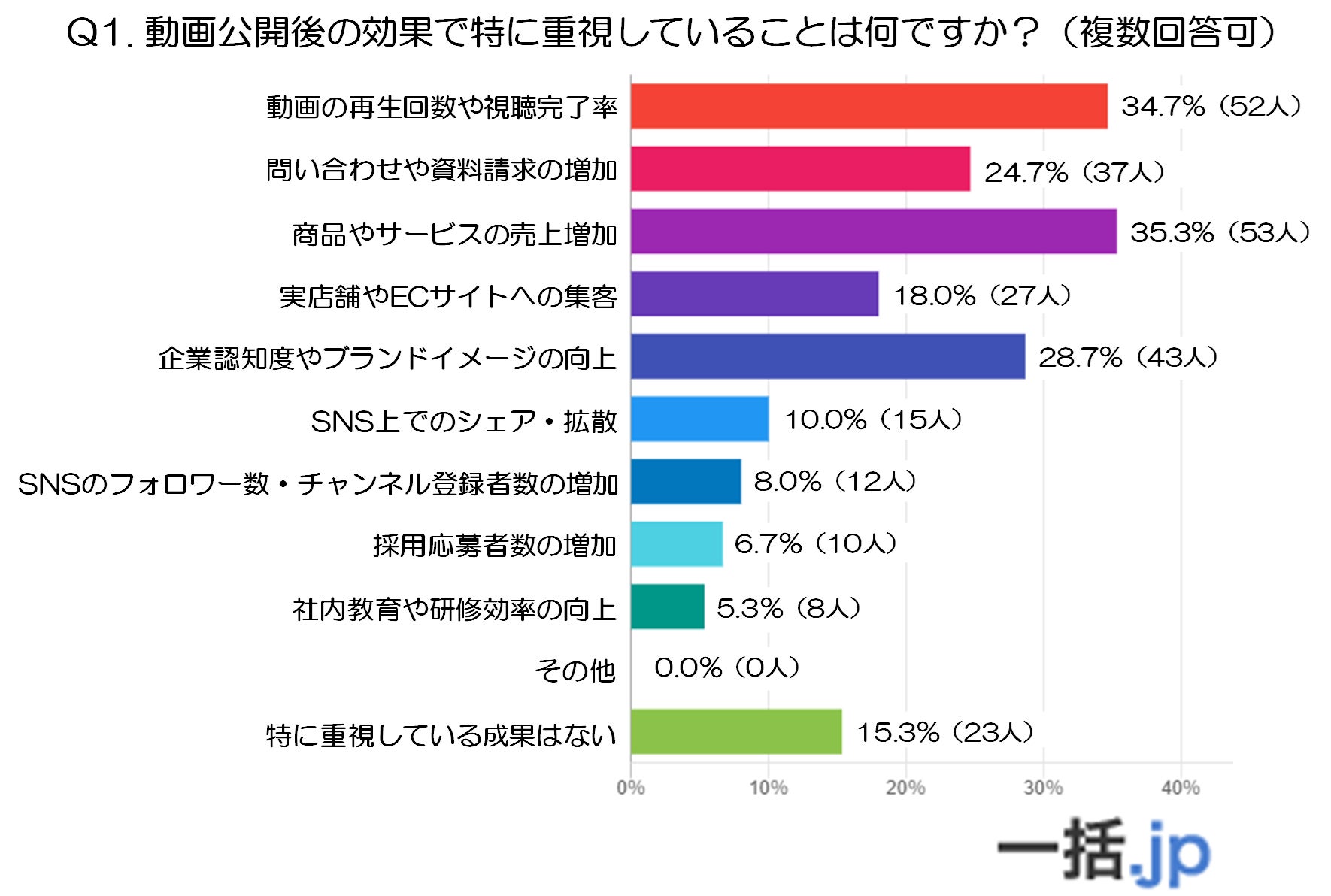 調査結果1:動画公開後の効果で特に重視していることは何ですか?※複数選択可(注1)