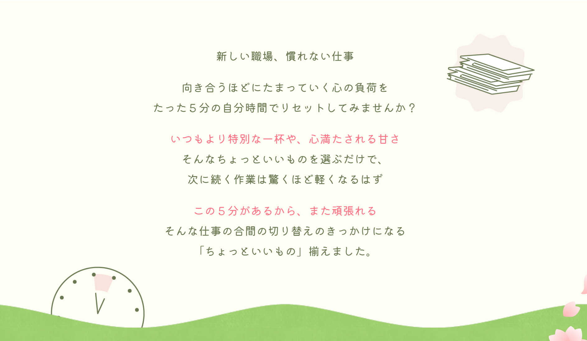 仕事の合間に取り入れやすい「ちょっといいもの」で、そんな切り替えのきっかけを提案します。
