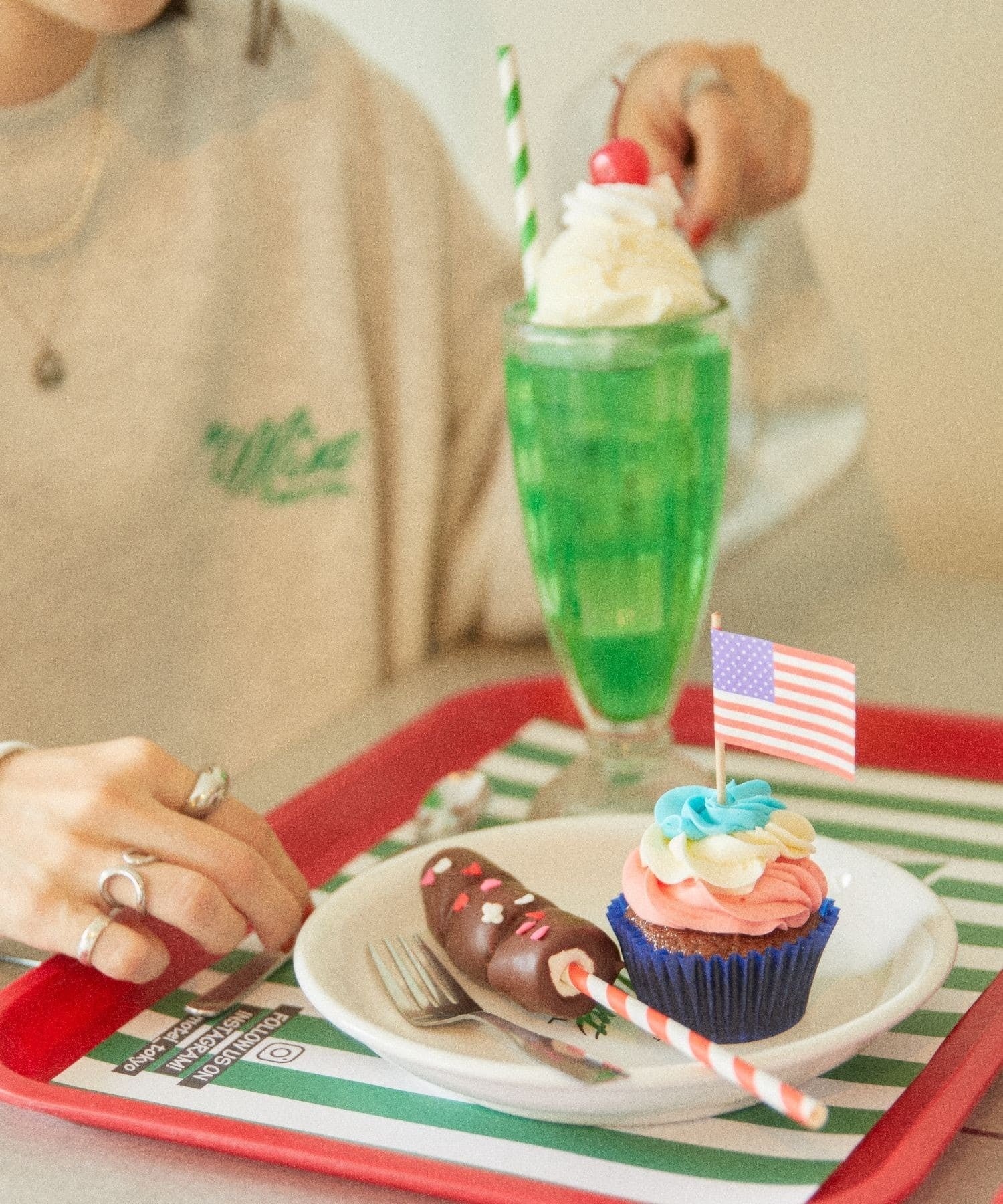 アメリカのモーテルや食堂をイメージし、アメリカの朝食のようなワッフルやフォトジェニックなカップケーキなどを提供する。
