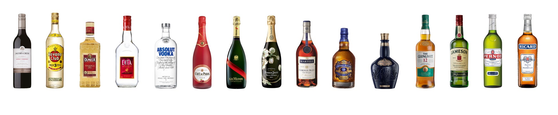 ペルノ・リカールは、アブソルートウオッカ、リカール(パスティス)、バランタイン、シーバスリーガル、ローヤルサルート、ザ・グレンリベット(スコッチウイスキー)、ジェムソン(アイリッシュウイスキー)、マーテル(コニャック)、ハバナクラブ(ラム)、季の美 京都ドライジン、ビーフィーター(ジン)、マリブ(リキュール)、メゾン マム、ペリエ ジュエ(シャンパン)、ジェイコブス・クリーク、ブランコット・エステート、カンポ・ヴィエホ、ケンウッド・ヴィンヤーズ(ワイン)など、世界のトップ100スピリッツブランドのうち16(注2)を含む業界内でも特に有名なブランドを数多く保有しております。