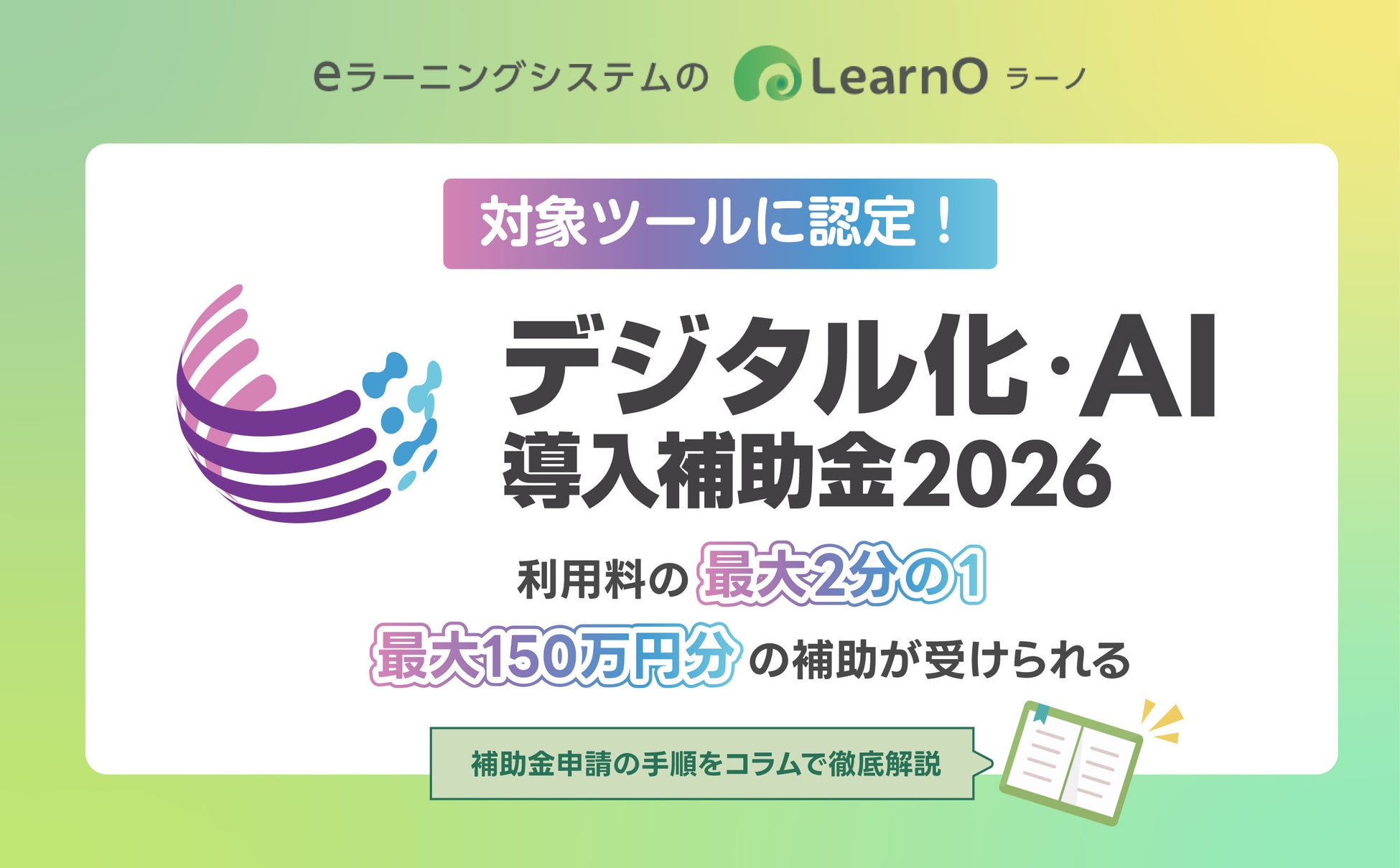 eラーニングシステムLearnO「デジタル化・AI導入補助金2026」の対象ツールに認定!