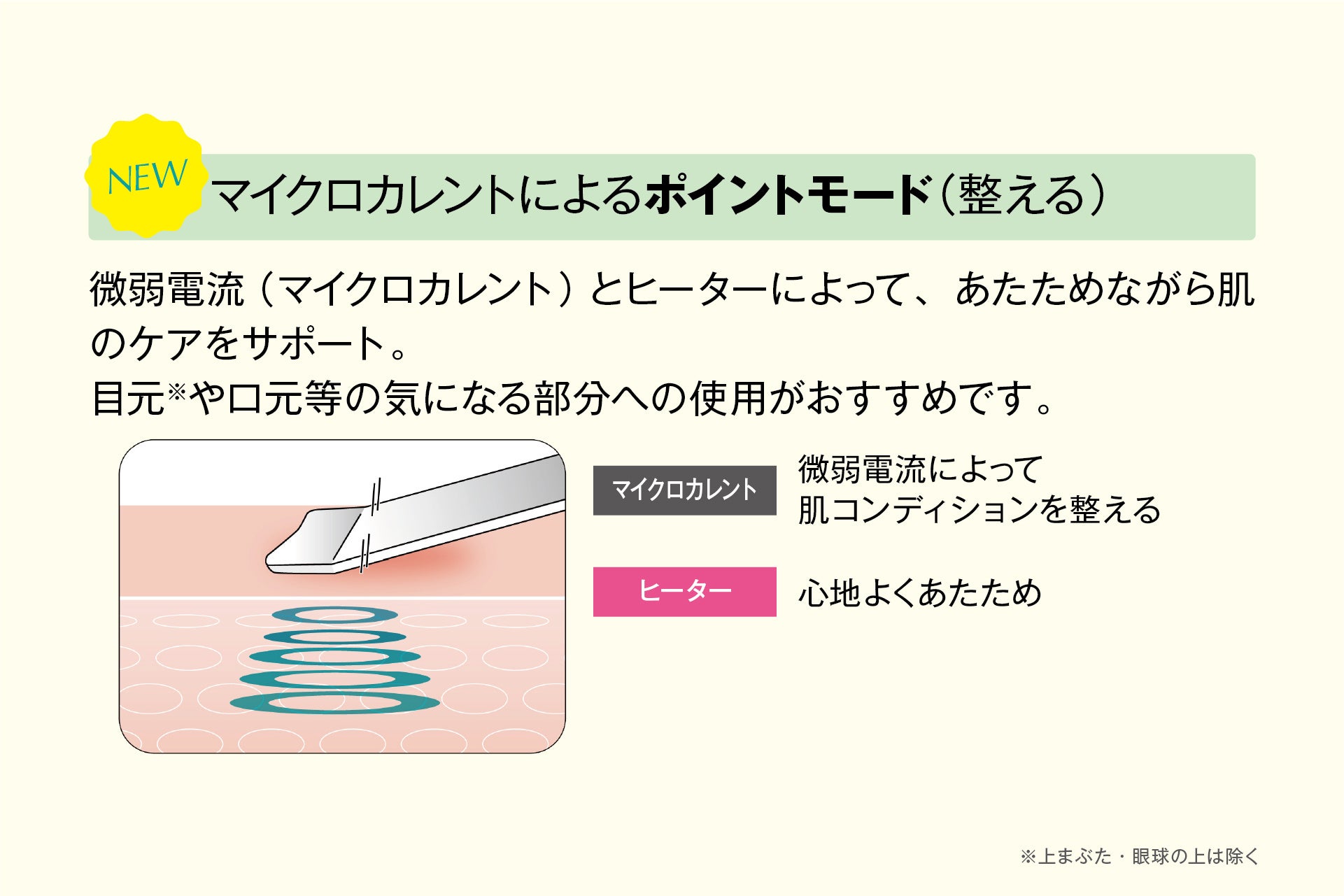 また、サロン業務用機器と同じ「2極(+/-)のイオンケア」機能が「肌の汚れ除去」「化粧水や美容液の浸透※2」をサポートし、本シリーズで新しく搭載された「マイクロカレント」により目元や口元等の肌ケアをサポートします。