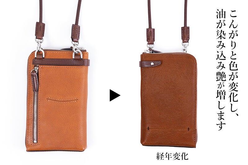 長く楽しめる「経年変化」を楽しんでほしいのはもちろんですが、鞄としての機能性も抜群。交通系カードがピッタリ入るポケットに、携帯用ポケット、お財布機能をもったポケットなど。それぞれに収納ポケットがついているから使いたい時に使いたいものをすぐに取り出せて、ごちゃごちゃ防止!
