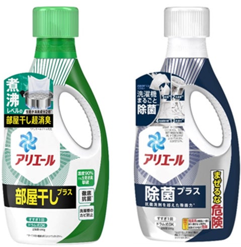 左から:「アリエール部屋干しプラス」、「アリエール除菌プラス」