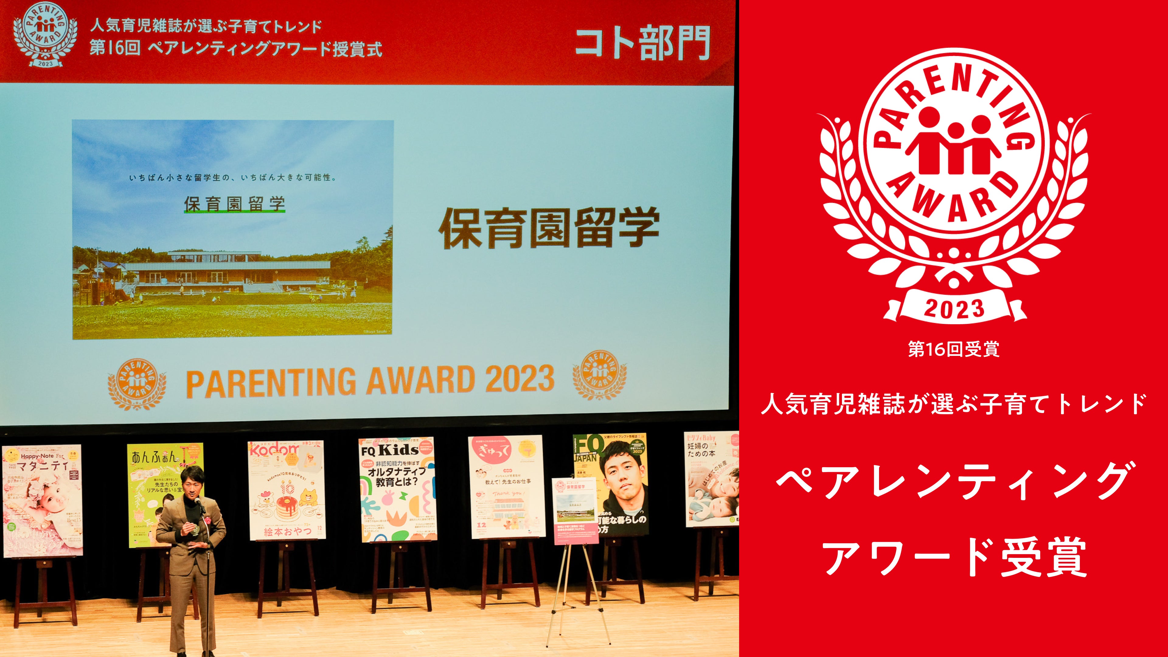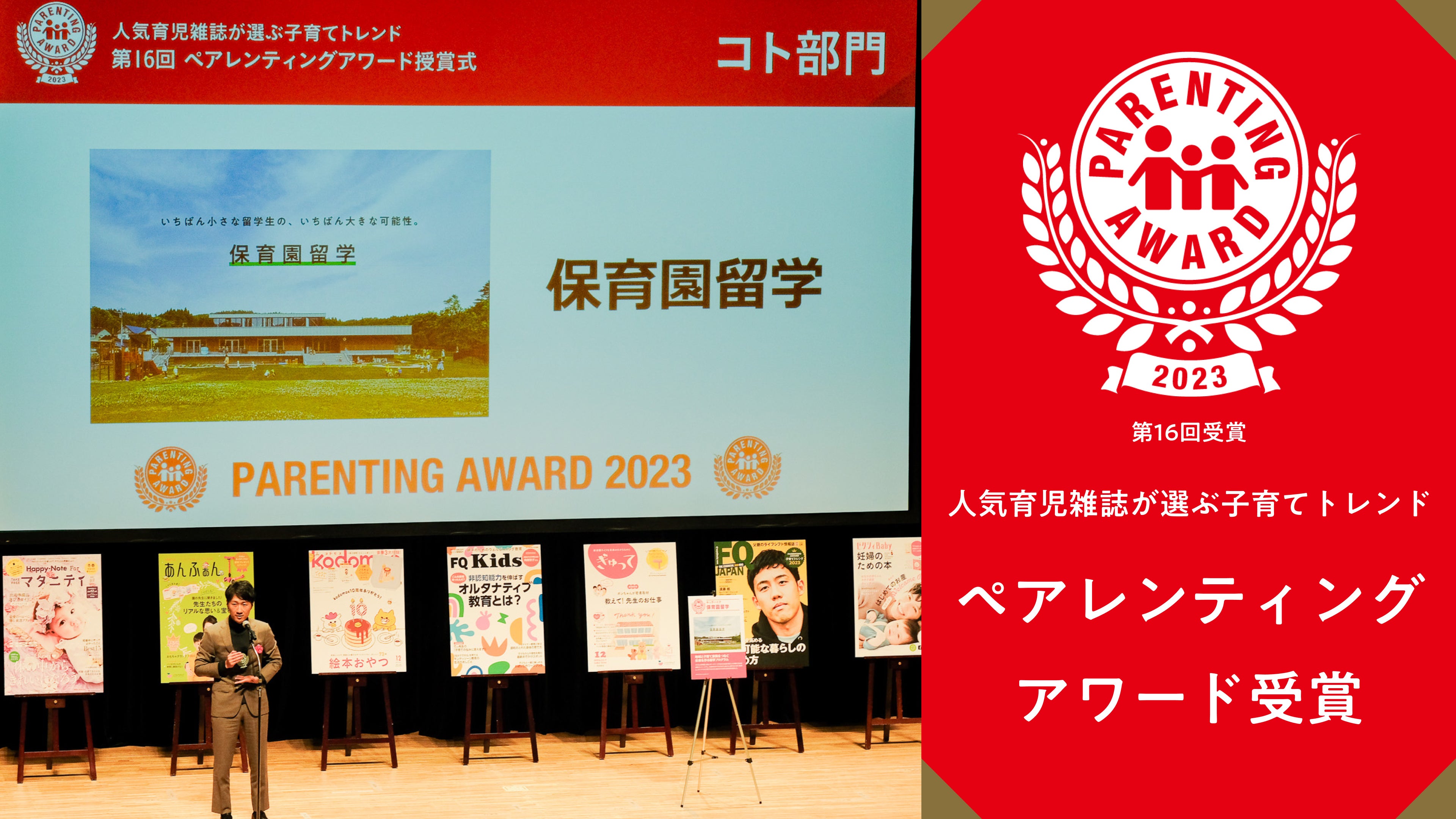 保育園留学、人気育児雑誌が選ぶ2023年の日本の子育てトレンド「ペアレンティングアワード」を受賞。