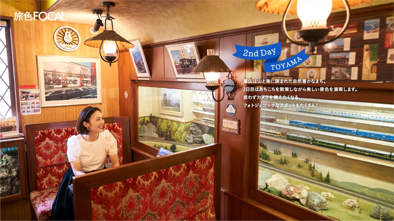 薬売りの街としても知られる富山は、薬瓶の産地として優れたガラス技術を持つ街でもあります。1日目は、その伝統と高い技術に触れられる「富山市ガラス美術館」や、伝統行事・おわら風の盆のメイン通りになっていて、日本の道100選にも選ばれた「諏訪町本通り」を巡り、ローカル・カルチャーを味わいましょう。2日目は鉄道模型に囲まれながら、オレンジが浮かぶコーヒーをいただける「喫茶駅 ブルートレイン」や、世界一美しいと称されるスターバックスがある「富岩運河環水公園」などのフォトジェニックなスポットに注目です。