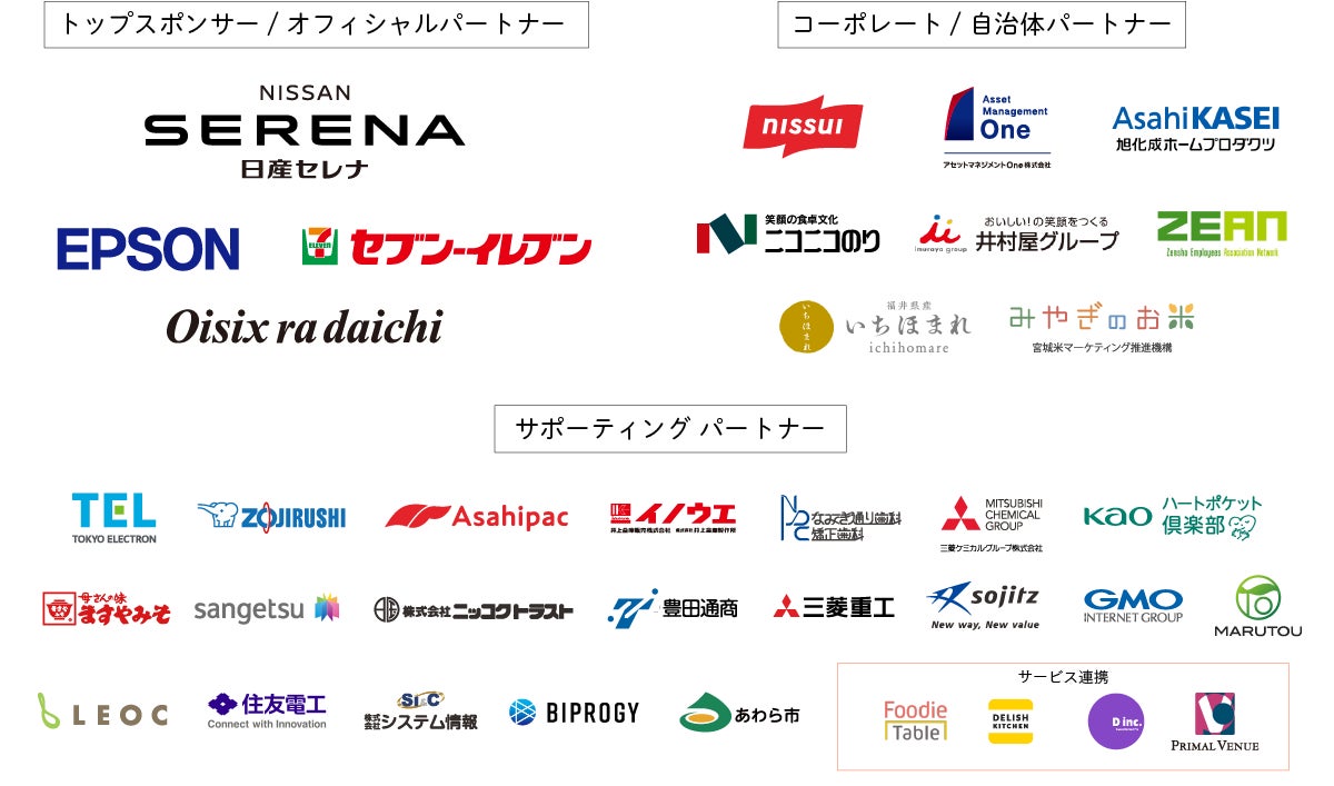 オフィシャルパートナー:セイコーエプソン、セブン‐イレブン・ジャパン、オイシックス・ラ・大地