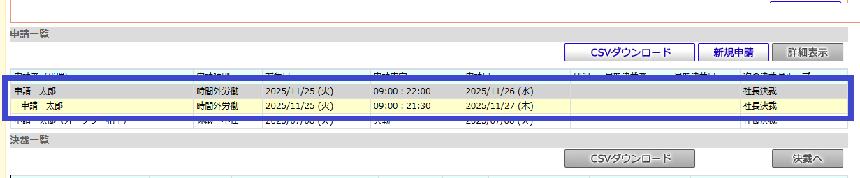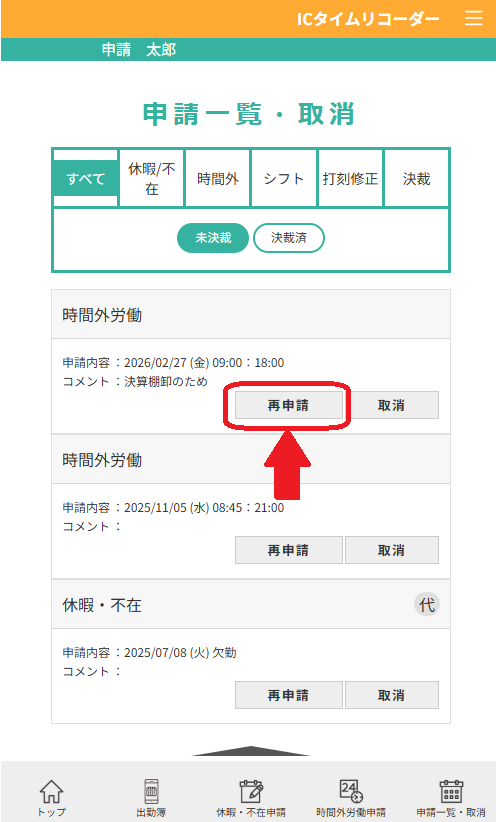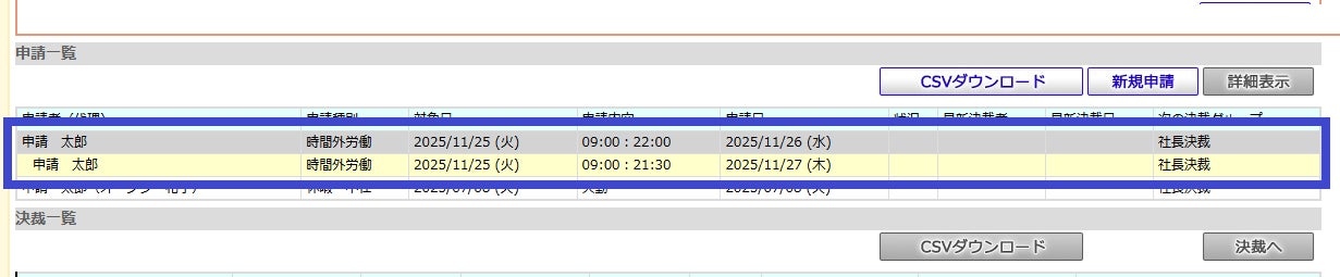 この機能により時間外労働などの申請後の修正が簡単になりました。