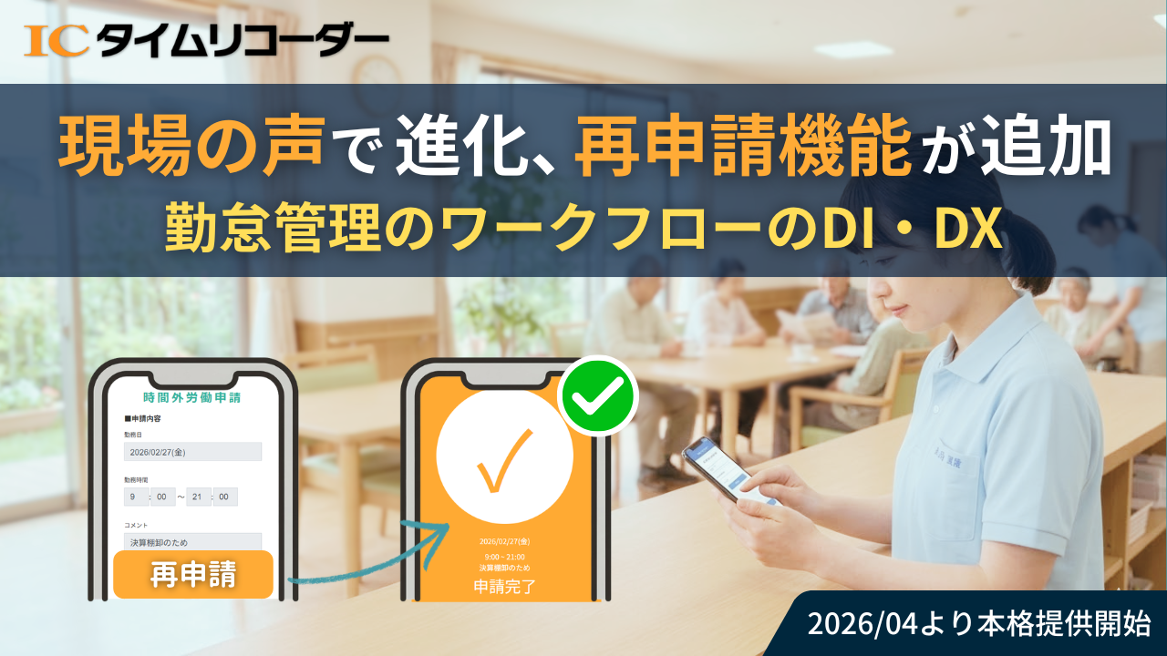 勤怠管理システム「ICタイムリコーダー」が新機能『再申請』を提供開始。修正を簡単に