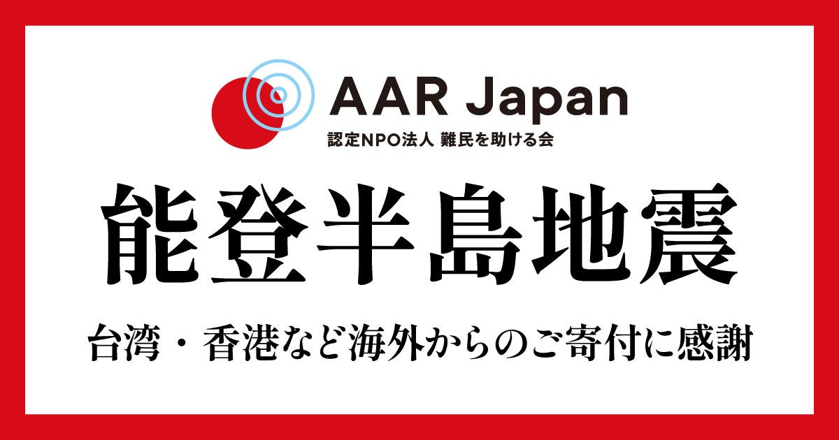 能登半島地震 台湾・香港など海外からのご寄付に感謝:AAR Japan