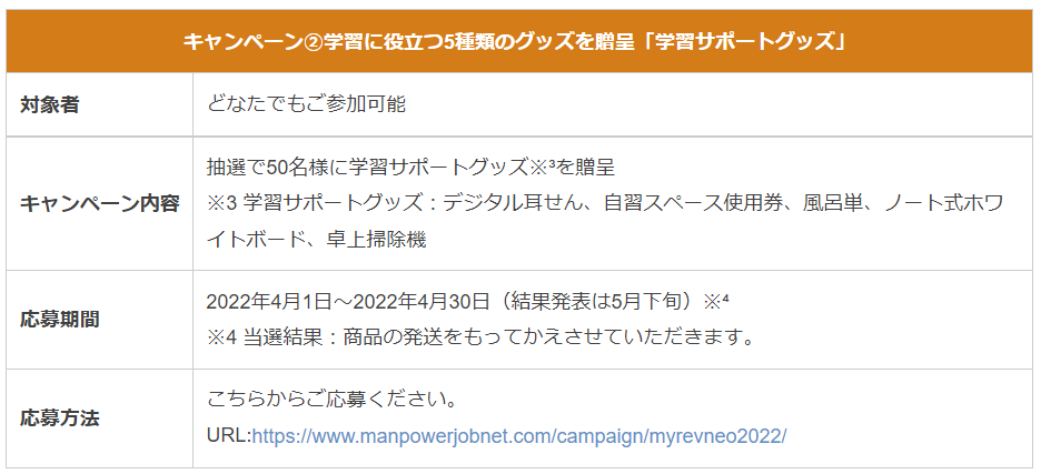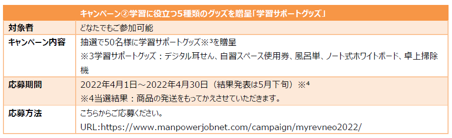 キャンペーン内容:抽選で50名様に学習サポートグッズ※³を贈呈