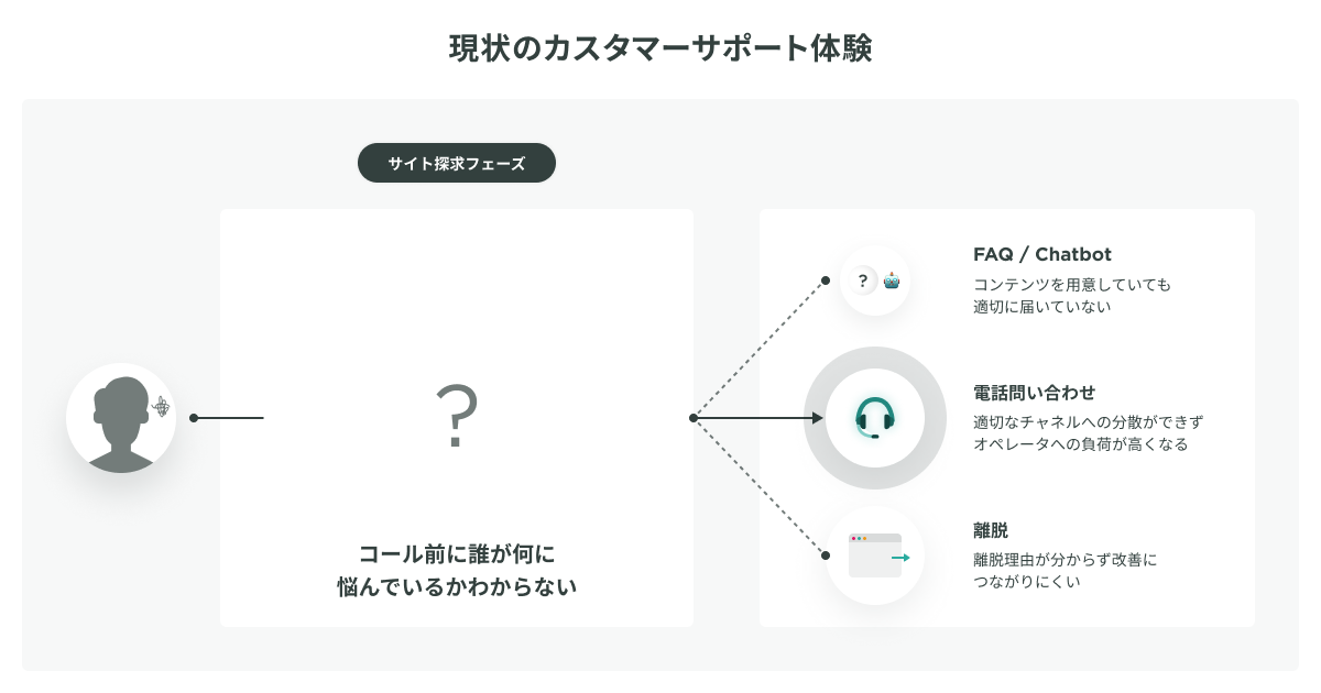 自己解決が進まない理由の1つとして、顧客の適切な誘導ができていないことが挙げられます。顧客のお困りごとを知らないままでは、いくらWebサイト上にFAQや自己解決向けの機能を充実させたとしても、顧客に正しい解決方法を届けることはできません。
